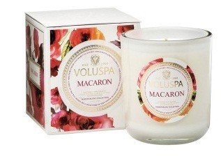 Voluspa, Macaron Classic Maison: Με άρωμα από τα φημισμένα Macarons de Paris, αυτό το κερί θα σας ταξιδέψει μέχρι την Πόλη του Φωτός. Αυτό το παχύ, λαμπερό βάζο παράγει ένα κομψό φως, καθώς «πλούσια» χρώματα στολίζουν την συσκευασία, αντανακλώντας την έμπνευση για το άρωμα που θα βγει από το εσωτερικό του. Αφού λιώσει το κερί μπορείτε να χρησιμοποιήσετε το βάζο για κοσμήματα, λουλούδια ή διακόσμηση. Θα το λατρέψετε!