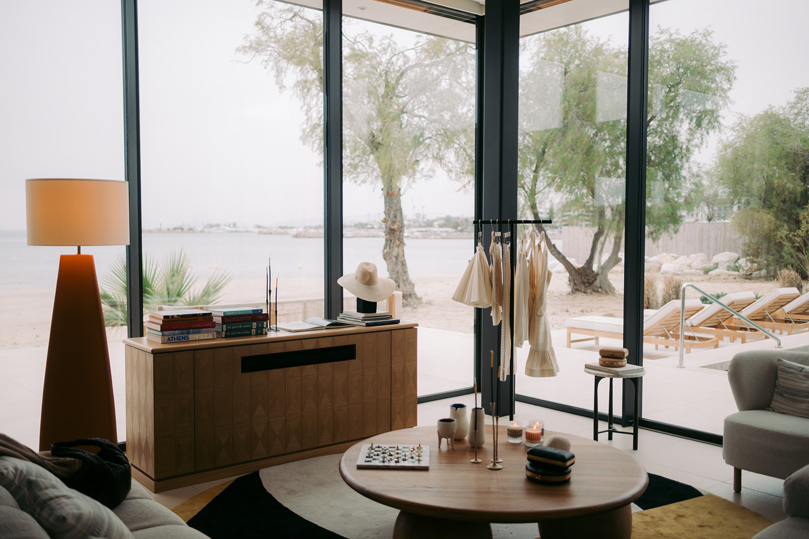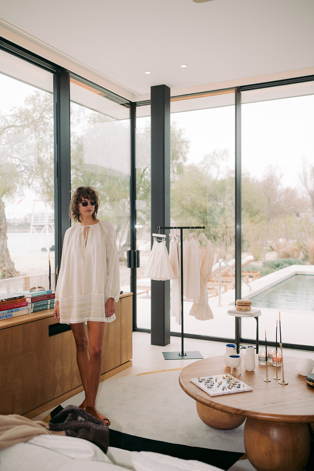 Η Villa 803 του One&Only Aesthesis, με θέα προς τη Γλυφάδα, αποτέλεσε το ιδανικό περιβάλλον για την παρουσίαση της συλλογής Άνοιξη/Καλοκαίρι ’26. Οι ανοιχτοί χώροι, το διάχυτο φως και η συνεχής παρουσία της θάλασσας διαμορφώνουν μια εμπειρία που παραπέμπει σε καλοκαιρινή απόδραση. Η αίσθηση είναι σχεδόν ναυτική, ακριβώς σαν ένα ταξίδι που ξεκινά χωρίς συγκεκριμένο προορισμό, αλλά με έντονη διάθεση εξερεύνησης.