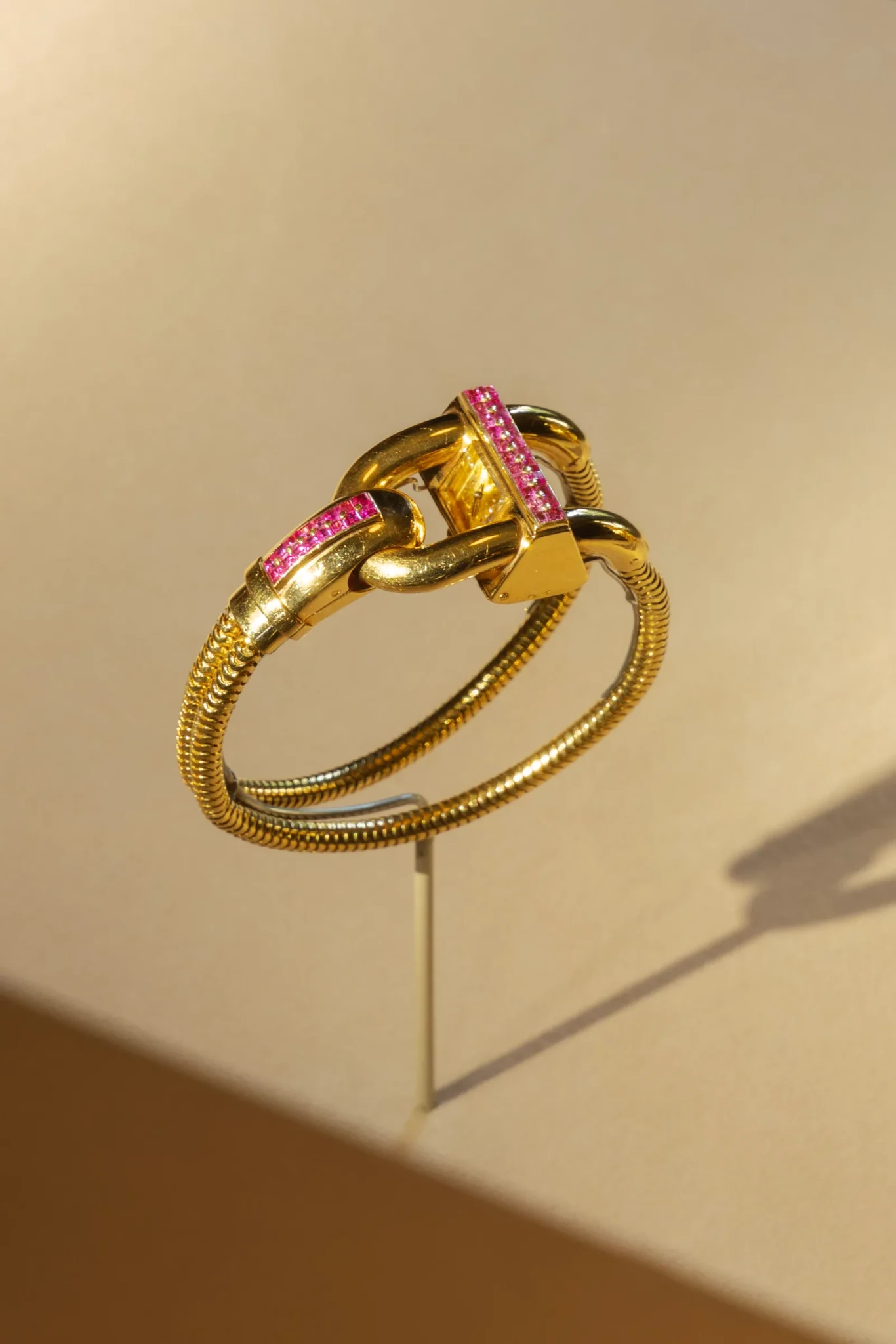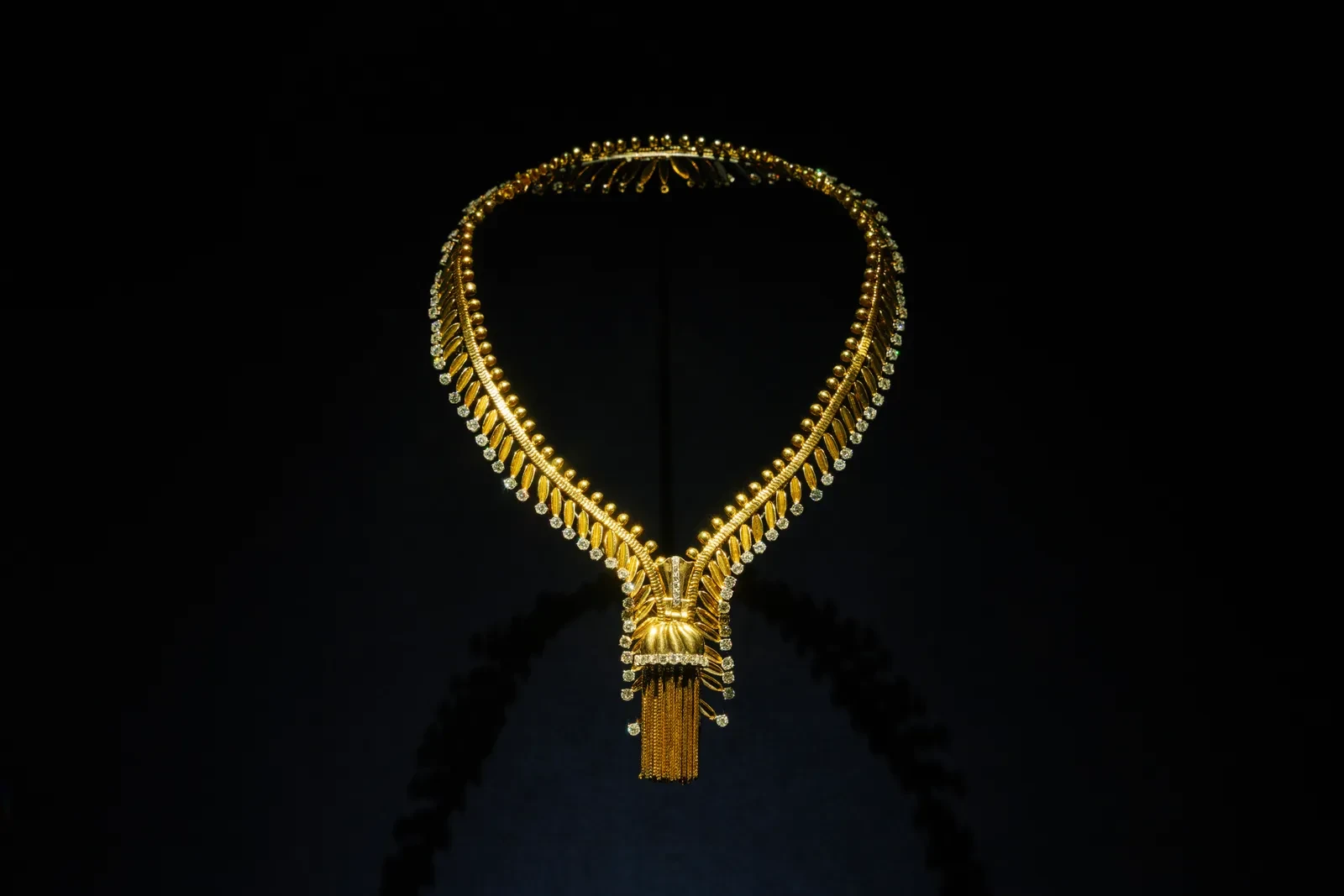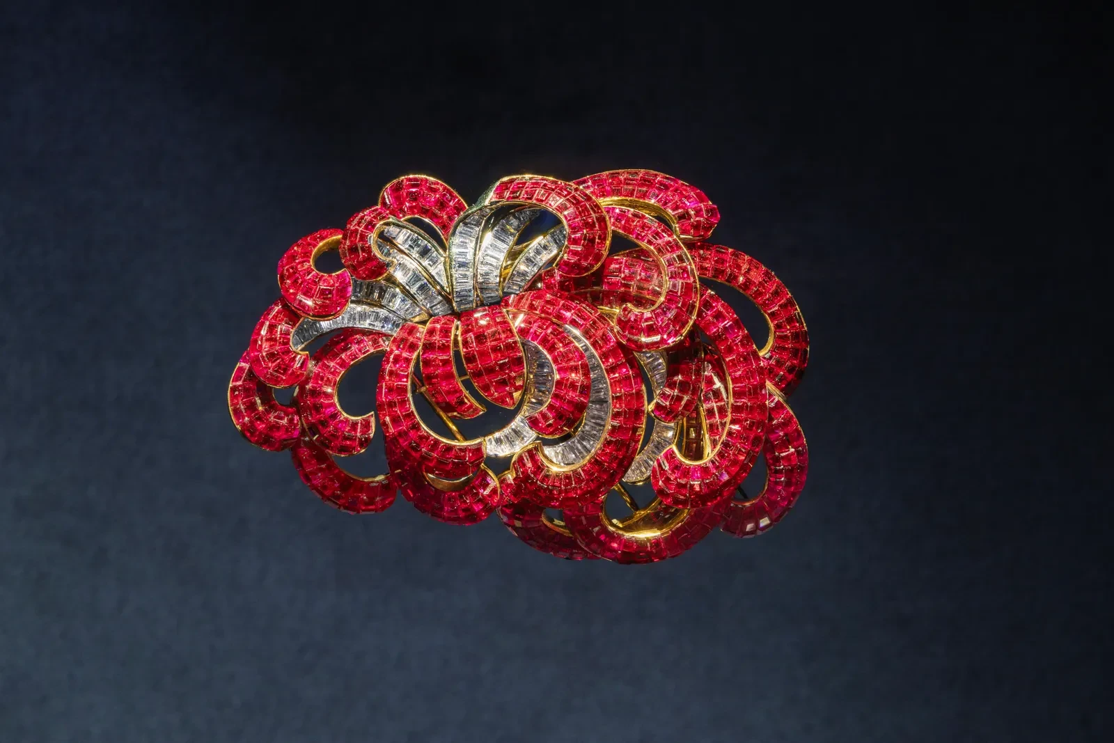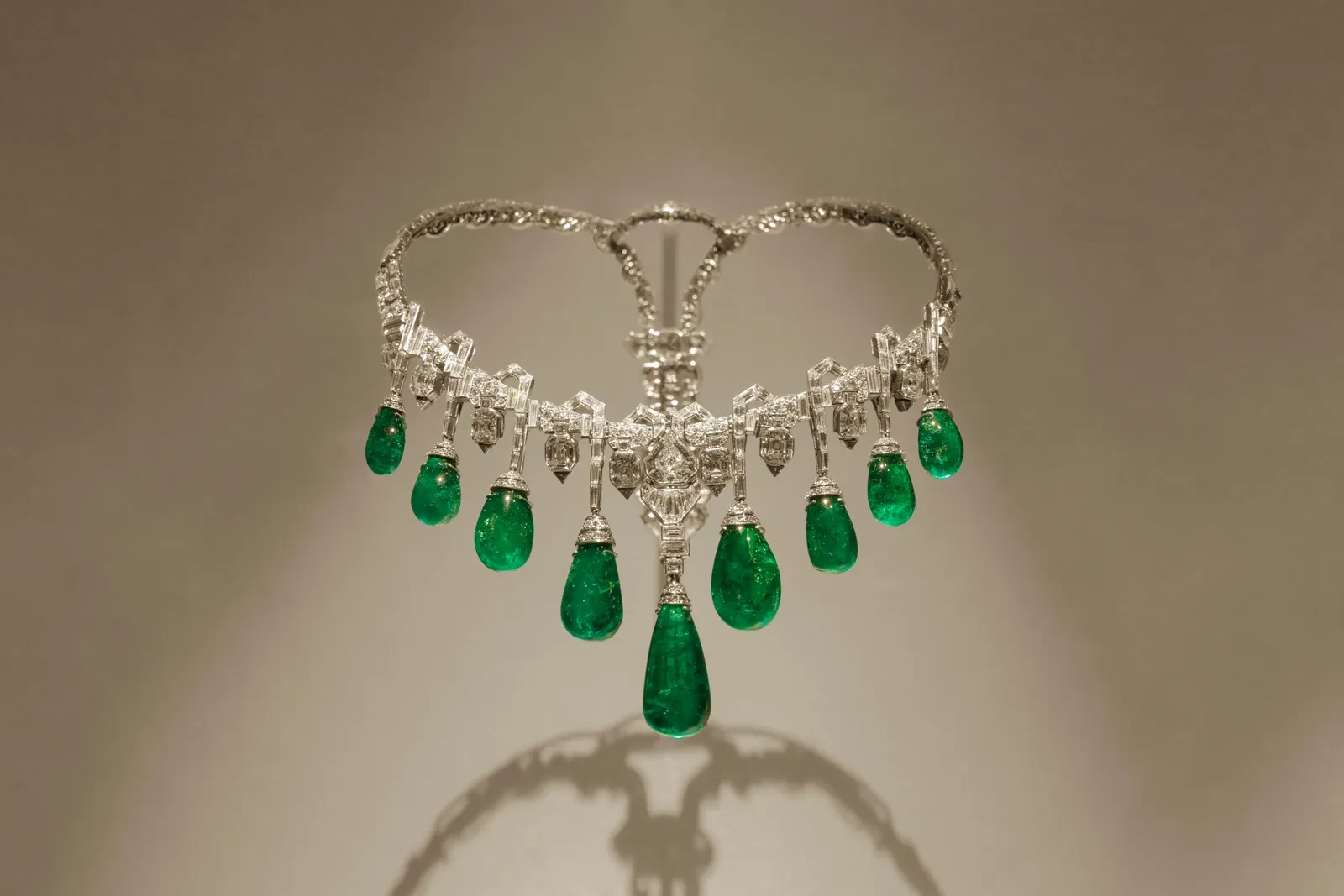 Η πρώτη ενότητα εστιάζει στις ρίζες του Art Déco, παρουσιάζοντας κοσμήματα όπως το Entwined Flowers, Red and White Roses Bracelet του 1924, το οποίο απέσπασε διακρίσεις για την τελειότητά του. Ακολουθεί η δεύτερη ενότητα που αναδεικνύει την καλλιτεχνική ωρίμανση του οίκου, με κοσμήματα που ενσαρκώνουν τη συμμετρία και τη λάμψη των πολύτιμων λίθων. Ξεχωρίζει ένα κολιέ του 1929, στολισμένο με σμαράγδια και διαμάντια, όπου η ακρίβεια και η φινέτσα συνυπάρχουν με τη γεωμετρική ισορροπία.