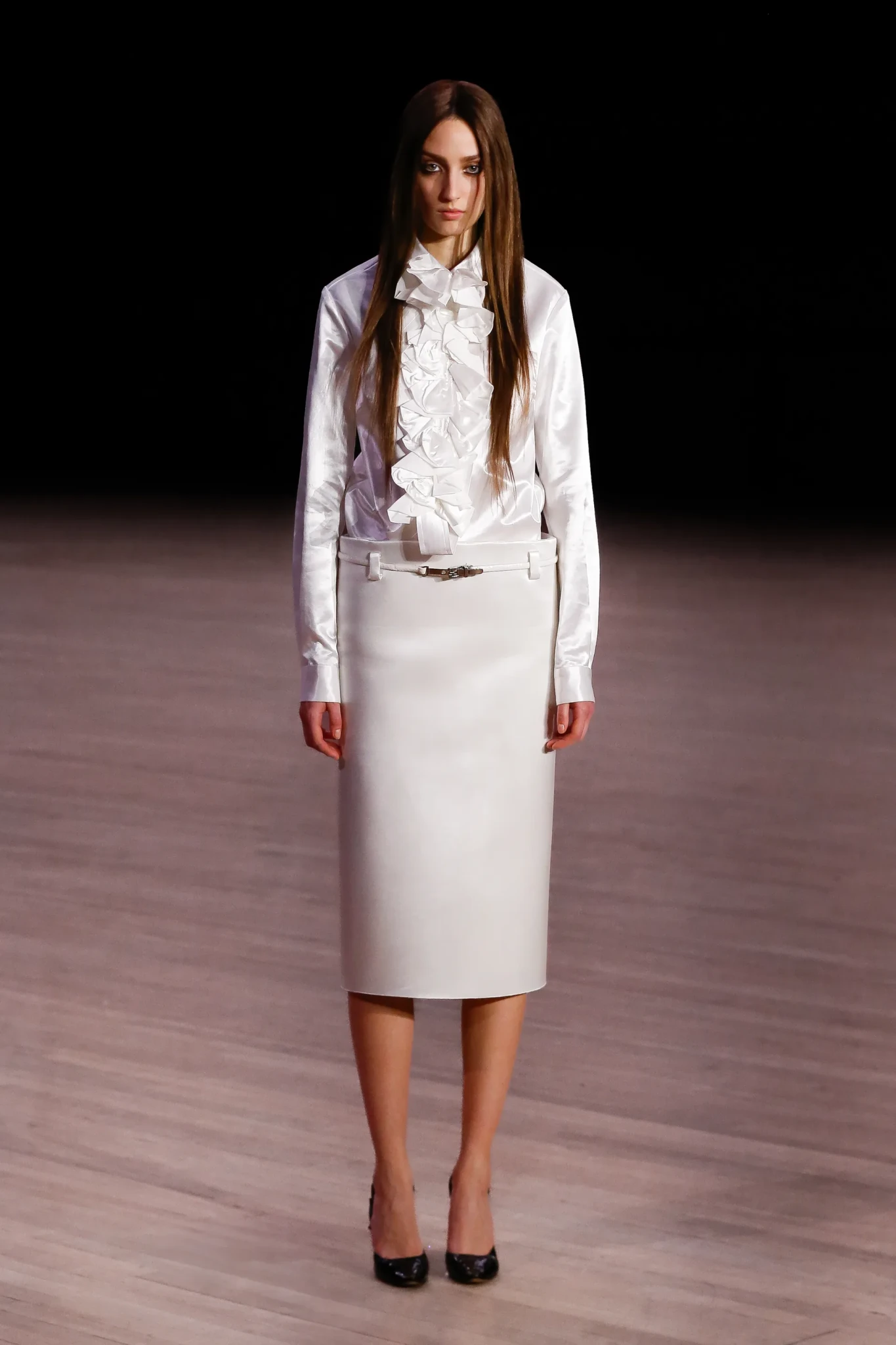 Η επίδειξη έγινε ξανά στο Park Avenue Armory, έναν χώρο που έχει συνδεθεί αρκετές φορές με τις παρουσιάσεις των συλλογών του. Το σκηνικό ήταν απλό: ένα τραπέζι και μερικές καρέκλες σε μια άκρη του μεγάλου χώρου. Πάνω στο τραπέζι υπήρχε ένας μικρός πίνακας με μια μαργαρίτα, έργο της Anna Weyant. Από μακριά, σχεδόν δε φαινόταν. Αυτό όμως έδειχνε κάτι βασικό: οι προσωπικές αναμνήσεις έχουν αξία κυρίως για εκείνον που τις κουβαλά.