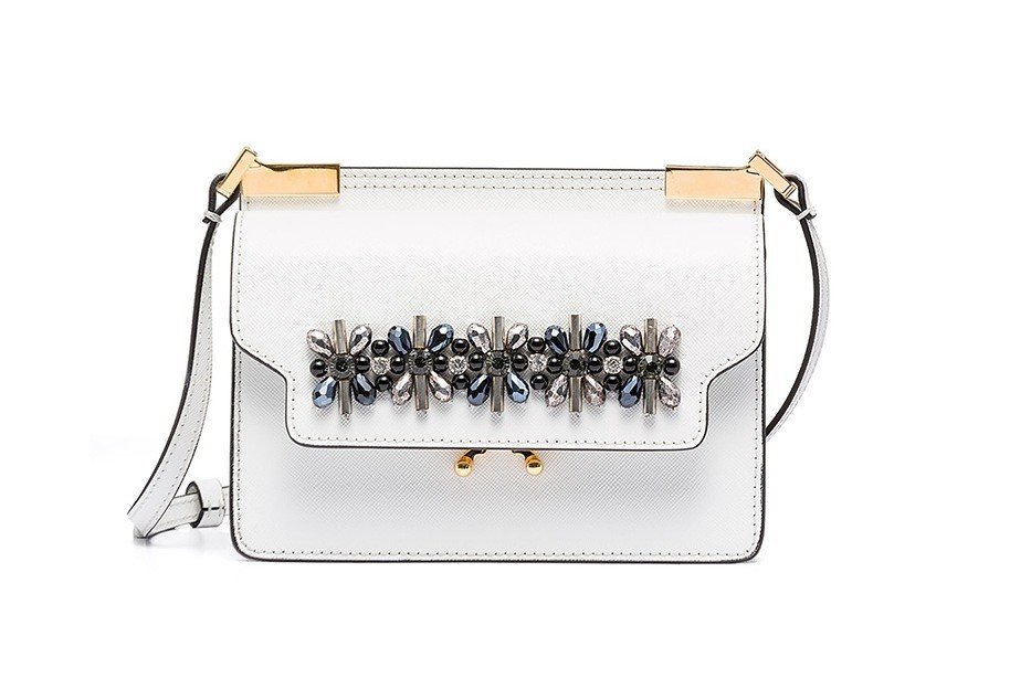 Για φέτος τα Χριστούγεννα, η εταιρεία Marni παρουσίασε τη Marni Crystal Christmas, μια συλλογή limited edition, η οποία αποτελείται από αξεσουάρ σε φωτεινές αποχρώσεις του χρυσού και αστραφτερού λευκού, που δείχνουν ακόμα πιο εντυπωσιακές, εξαιτίας των φωτεινών πετρωμάτων και των κρυστάλλων. Πρωταγωνιστής στη νέα σειρά του luxury brand είναι η Marni Micro Trunk. Η ανανεωμένη έκδοση του Trunk Bag, διατηρεί το κλασσικό, δημοφιλές σχήμα της ,απλά σε ένα πιο compact μέγεθος και είναι διαθέσιμη σε μία δερμάτινη εκδοχή (Saffiano leather) με πολύτιμα κρύσταλλα. Η τσάντα ταιριάζει απόλυτα με τα υπόλοιπα αξεσουάρ της συλλογής.