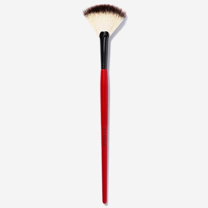 Το πινέλο βεντάλια είναι must για 2 λόγους: για να απλώσετε το highlighter στα ζυγωματικά και στην κορυφή της μύτης και να διορθώσετε τυχόν λάθη στο μακιγιάζ, όπως fallout πούδρας.