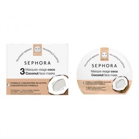 Coconut Face Masks, Sephora Collection: Μοναδική προσφορά με 3 μάσκες προσώπου με γεύση καρύδας από τη SEPHORA COLLECTION στην τιμή των 2! Μια φυτική μάσκα με ίνες που ταιριάζει απόλυτα στο περίγραμμα του προσώπου. Εμπλουτισμένη με καρύδα βιολογικής προέλευσης, διαθέτει αναζωογονητική σύνθεση με ενεργά συστατικά για ορατά αποτελέσματα σε 15 λεπτά.