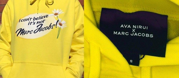 Αφού μοιράστηκε με τους followers της ένα teaser, η σχεδιάστρια Ava Nirui ανέβασε στο Instagram τη δεύτερη συνεργασία της με τον Marc Jacobs. Εμπνευσμένη από το logo του brand της διάσημης designer "I Can' t Believe It's Not Butter!", αυτό το φωτεινό, κίτρινο hoodie αντικαθιστά τη λέξη "Βutter" με το όνομα του Αμερικανού σχεδιαστή. Στο πίσω μέρος του, θα βρείτε την έκφραση "Unreal taste!" τυπωμένη με κόκκινα γράμματα, θέλοντας να αναδείξει ότι ένα τέτοιο item είναι τόσο καλόγουστο, που δεν πιστεύει κανείς ότι είναι αληθινό! Συνδυάστε το με τα αγαπημένα σας λευκά sneakers και jeans και κάντε τις πιο stylish εμφανίσεις. Το hoodie είναι στο marcjacobs.com. Check it!