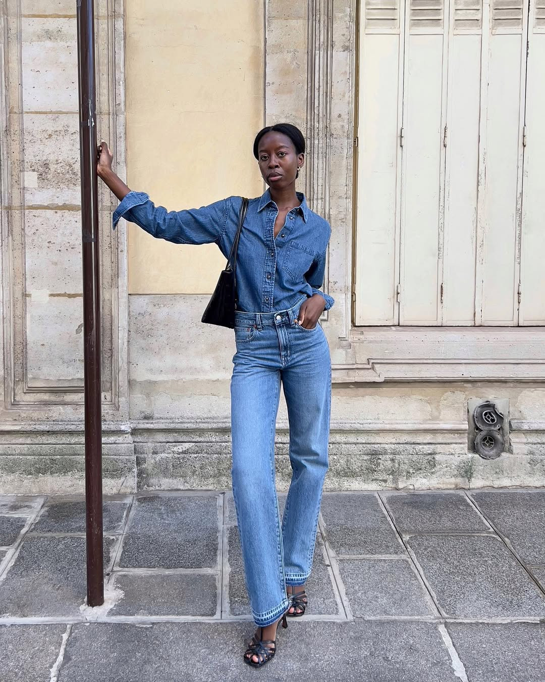 Το Canadian tuxedo, δηλαδή ο συνδυασμός τζιν παντελονιού και πουκαμίσου ή jacket ή αλλιώς το denim on denim έχει επιστρέψει πιο δυναμικά από ποτέ. Δεν υπάρχει πιο σύγχρονος τρόπος να αναδείξετε την αυθεντικότητα του denim από το να δημιουργήσετε ένα total jean look προσθέτοντας bold λεπτομέρειες που κάνουν τη διαφορά. Μια εντυπωσιακή ζώνη, γυαλιά με αυστηρό σκελετό ή γόβες σε animal print μετατρέπουν το look από καθημερινό σε fashion statement. Λεοπάρ kitten heels και μεγάλα σκουλαρίκια ολοκληρώνουν έναν συνδυασμό που αποπνέει αυτοπεποίθηση και ανεπιτήδευτο coolness.