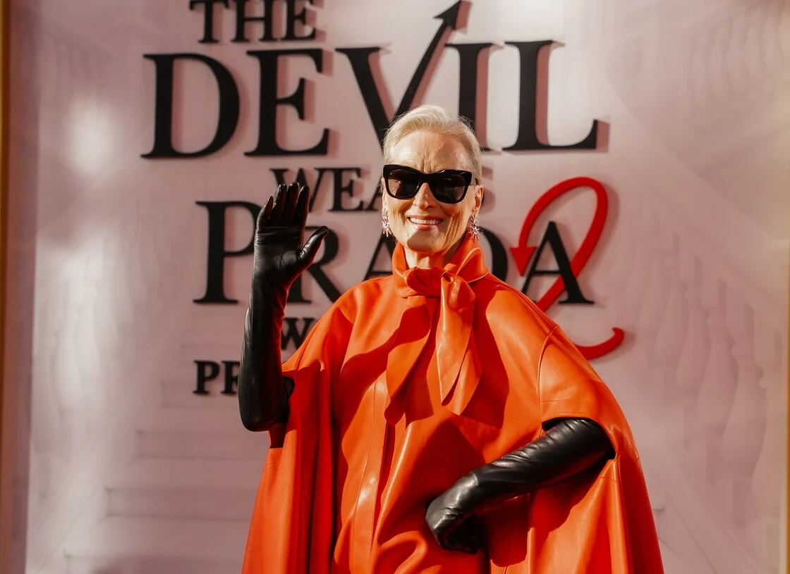 Συγκεκριμένα η ηθοποιός υιοθέτησε μια δραματική αισθητική, επιλέγοντας ένα εντυπωσιακό look σε έντονους κόκκινους τόνους, με ένα φόρεμα- κάπα από τον οίκο Givenchy. Το σύνολο ολοκληρώθηκε με τα χαρακτηριστικά αξεσουάρ της διευθύντριας του περιοδικού “Runway”, όπως τα statement γυαλιά και τα μακριά γάντια.