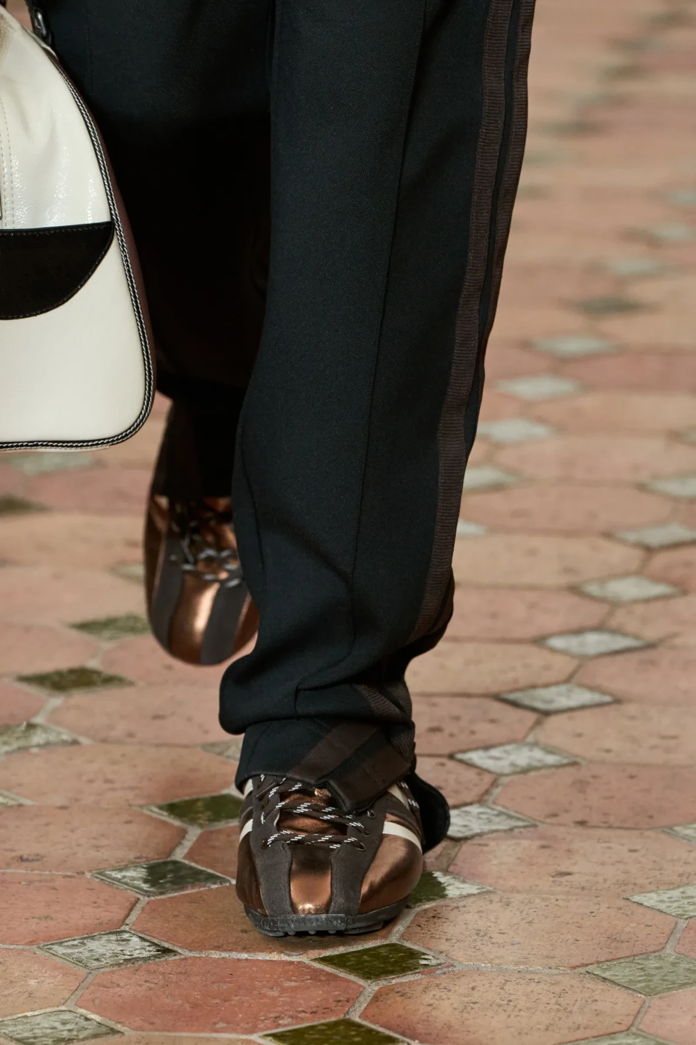 Αναφερόμενες στα μεταλλικά στοιχεία δεν γίνεται να μην παρουσιάσουμε μία τάση, η οποία είναι ξεκάθαρο πως κυριαρχεί στον κόσμο των αθλητικών. Οι μεταλλικές εκδοχές που προσθέτουν την απαραίτητη λάμψη στην εικόνα μας, επιστρέφουν πιο δυναμικά από ποτέ τη φετινή άνοιξη. Ενώ οι ασημί αποχρώσεις, όπως αυτές που είδαμε στους Maison Margiela και Simone Rocha, θα κυριαρχήσουν, οι copper τόνοι, όπως εκείνοι του Wales Bonner, είναι εξίσου δημοφιλείς. Όλα δείχνουν ότι το 2026 θα είναι η χρονιά των statement sneakers, καθώς, επιλέγοντας ένα τέτοιο σχέδιο δεν θα χρειαστεί να προσθέσετε κανένα άλλο αξεσουάρ στην εικόνα σας.