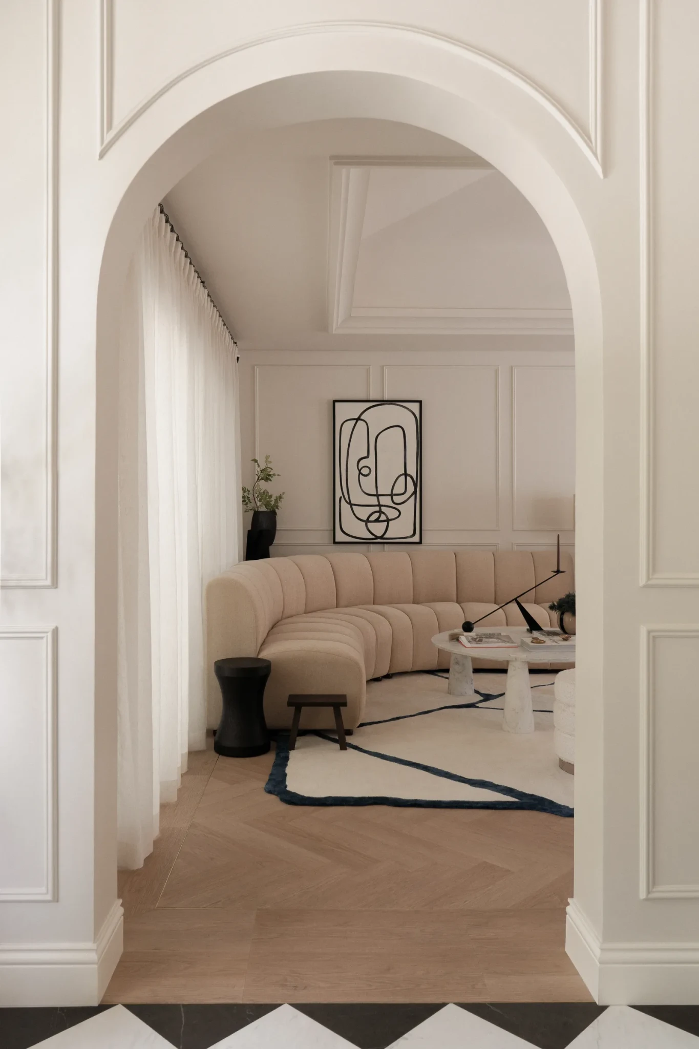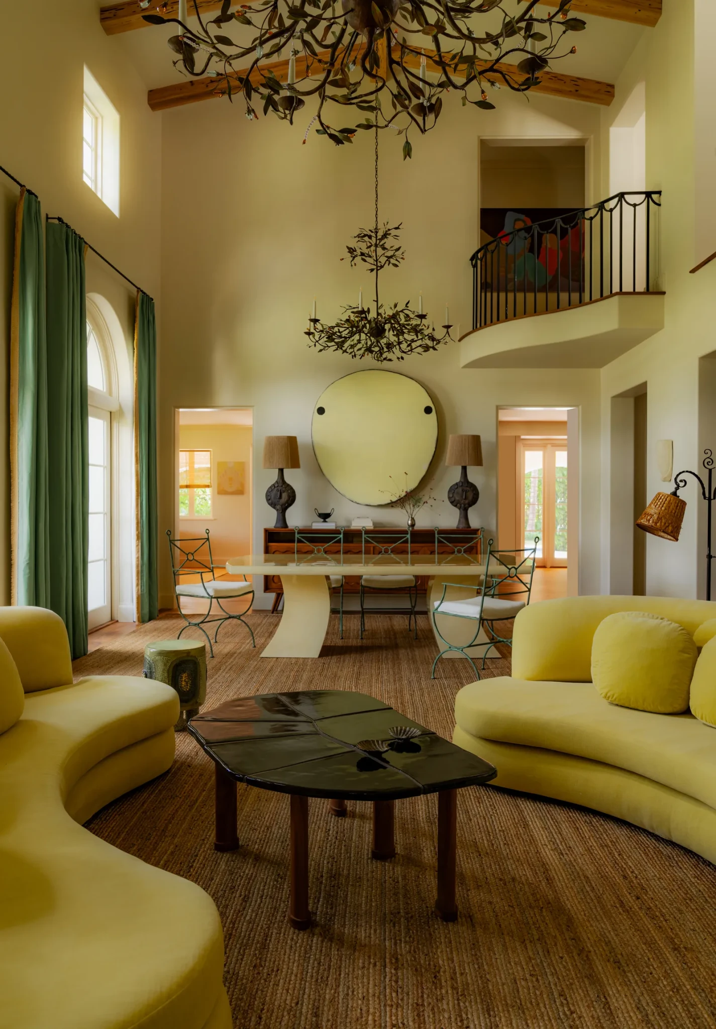 Οι καμπύλες επιβεβαίωσαν την κυριαρχία τους φέτος, όχι απλώς ως διακοσμητικό στοιχείο, αλλά ως σχεδιαστική στάση. Η ανάγκη για ηρεμία και αρμονία οδήγησε σε έπιπλα με μαλακές γραμμές, στρογγυλεμένες γωνίες, μεγάλα τραπέζια, organic καρέκλες και φωτιστικά που μοιάζουν να ρέουν μέσα στον χώρο. Στην αρχιτεκτονική των εσωτερικών χώρων, είδαμε επιβλητικά ανοίγματα, καμπυλωτά χωρίσματα και βιβλιοθήκες χωρίς αιχμηρές γωνίες, πολλά από αυτά εμπνευσμένα από τη δεκαετία του '70. Το 2026, οι καμπύλες προβλέπεται να γίνουν ακόμα πιο τολμηρές και δομικές: όχι μόνο στα έπιπλα, αλλά και στην ίδια τη γεωμετρία του χώρου.