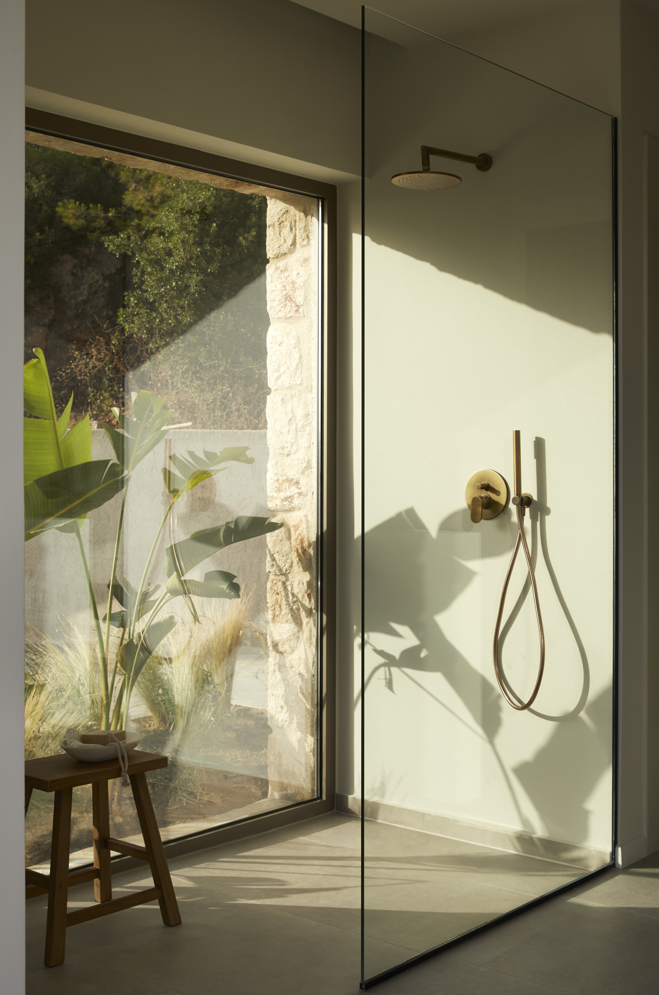 Ιδιαίτερη έμφαση έχει δοθεί και στη διαμόρφωση των μεταβατικών χώρων, εκεί όπου το μέσα συναντά το έξω. Μεγάλες ανοιγόμενες επιφάνειες, διαμπερείς διατάξεις και ημιυπαίθριοι χώροι επιτρέπουν τη συνεχή ροή του αέρα και του φωτός, δημιουργώντας μια αίσθηση ελευθερίας και ευρυχωρίας. Η αρχιτεκτονική δεν περιορίζεται σε όρια, αλλά λειτουργεί ως φίλτρο που αναδεικνύει το τοπίο και το φως.