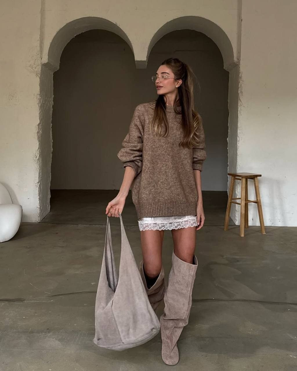 Σίγουρα δεν μπορείτε να κάνετε λάθος αν συνδυάσετε ένα mini dress μαζί με suede μπότες σε καφέ, γκρι ή μαύρες αποχρώσεις. Είναι ίσως ο πιο θηλυκός και παιχνιδιάρικος τρόπος να εντάξετε τις knee high boots στις εμφανίσεις σας, ενώ η σιλουέτα δείχνει ανάλαφρη και σωστά «στημένη». Προσθέστε μερικά boho αξεσουάρ και θα έχετε ένα τέλειο fall outfit για κάθε περίσταση.