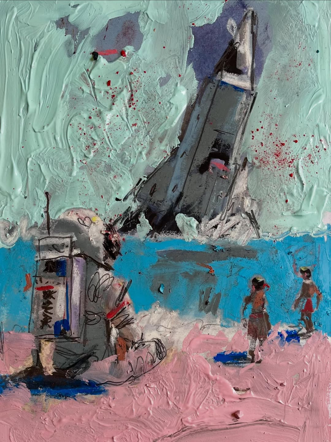 Μου ζητήθηκε από τη φίλη μου, την Christy, που είναι μια εκ των ιδιοκτητών του Φόlki, να εκθέσω ένα έργο μου για τον μήνα Σεπτέμβριο και ανταποκρίθηκα με χαρά. Το συγκεκριμένο έργο είναι λίγο διαφορετικό σε σχέση με όσα φτιάχνω το τελευταίο διάστημα και ήταν μια ωραία αφορμή να παρουσιαστεί σε ένα χώρο εκτός ατελιέ.