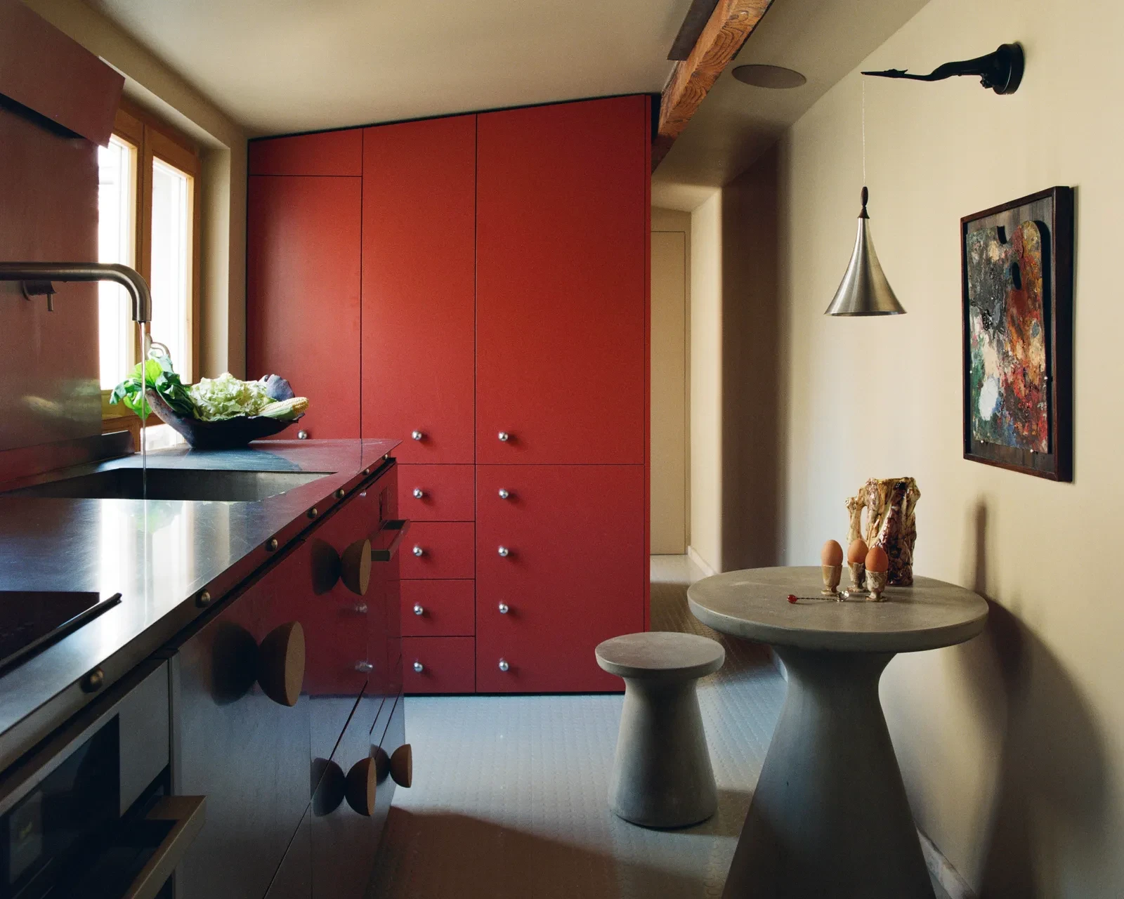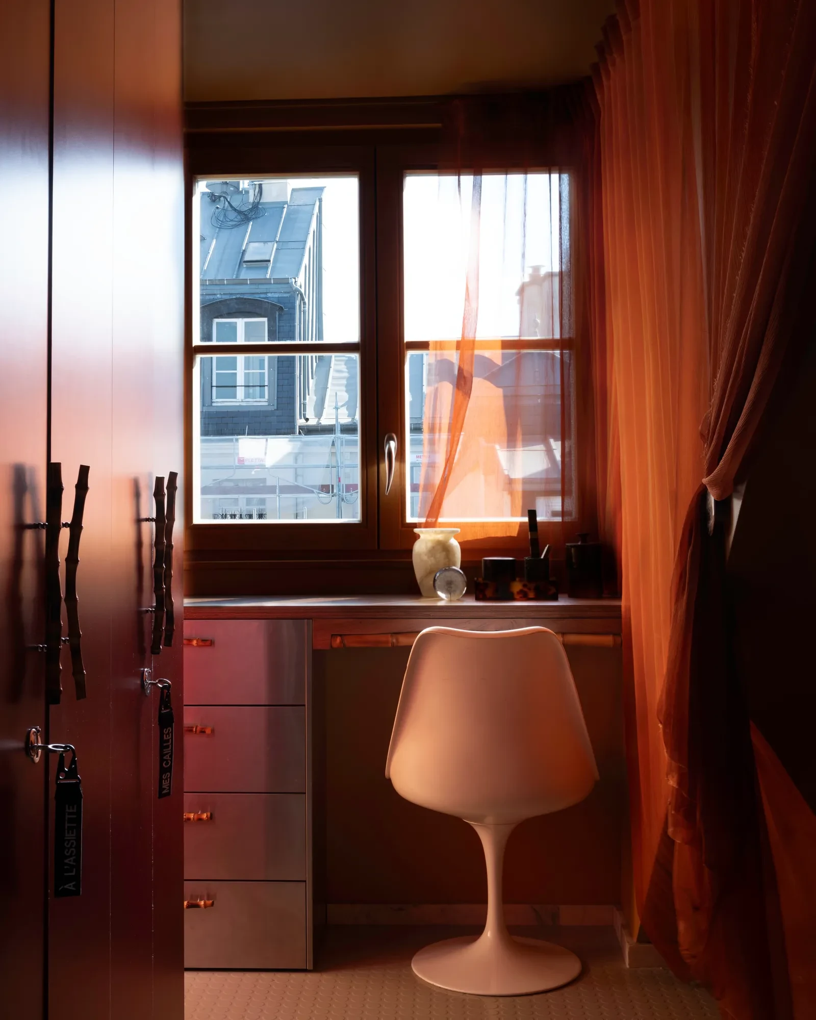 Στην πολυσύχναστη γειτονία Marais του Παρισιού, λίγα βήματα από την πλατεία Vosges, ένα παλιό ατελιέ καλλιτέχνη ξαναγεννιέται ως χώρος σύγχρονης κατοικίας. Το διαμέρισμα, που για δεκαετίες υπήρξε το εργαστήριο και η εστία του ζωγράφου Albert Chaminade, έμεινε ανεκμετάλλευτο για πολλά χρόνια, κουβαλώντας επάνω του το βάρος του χρόνου και την ατμόσφαιρα μιας δημιουργικής ζωής. Οι αρχιτέκτονες Jules Brisson και Laurent Lustigman ανέλαβαν να μεταμορφώσουν αυτό το μοναδικό κέλυφος σε ένα καταφύγιο που ισορροπεί ανάμεσα στη μνήμη και τη σύγχρονη αρχιτεκτονική, τιμώντας το παρελθόν και δίνοντάς του νέα πνοή.