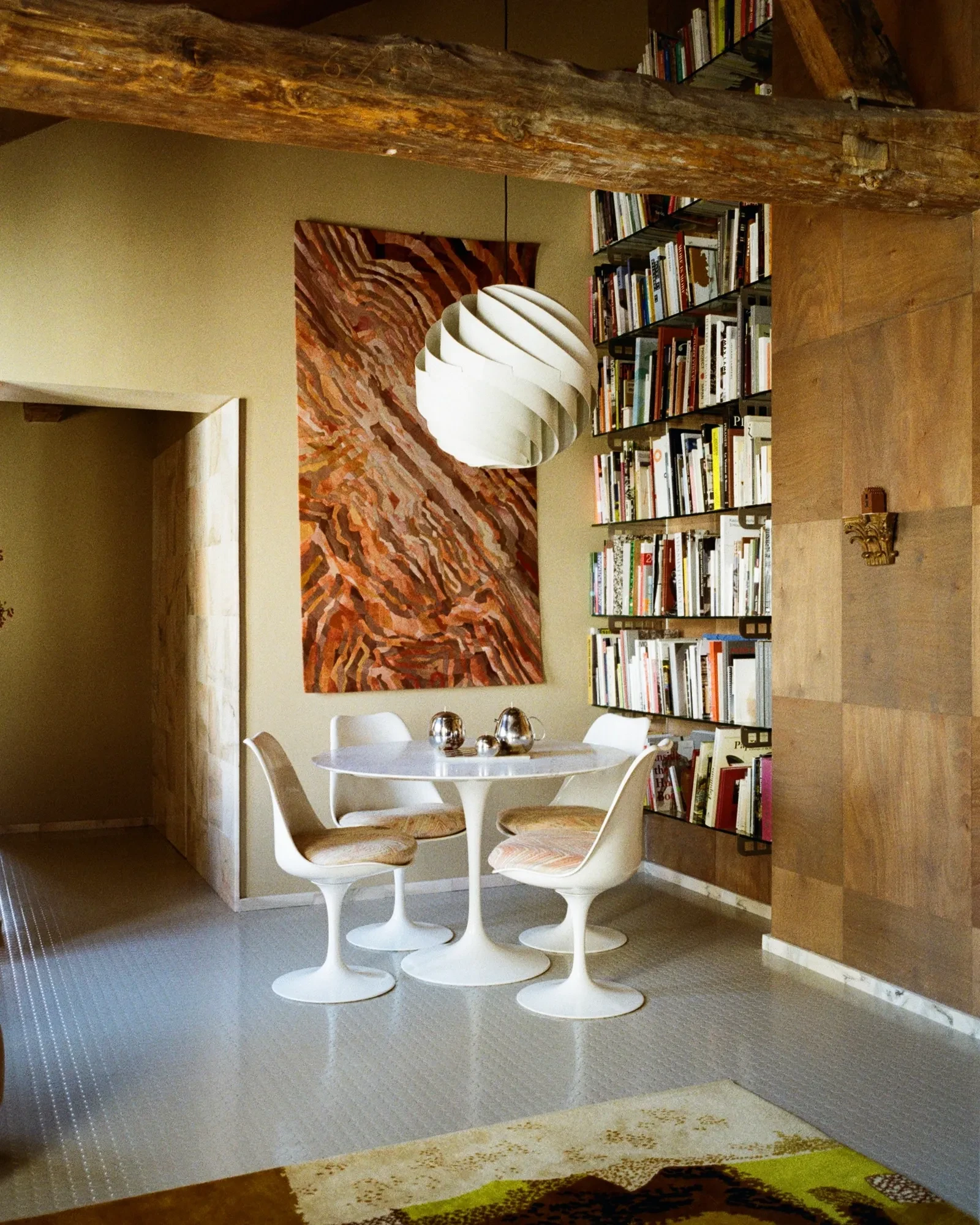 Η προσέγγιση δεν επιχείρησε να εξαφανίσει τις μνήμες του παλιού ατελιέ αλλά να τις εντάξει με λεπτότητα στη νέα του ταυτότητα. Οι αρχιτέκτονες εμπνεύστηκαν από τις αυστηρές γραμμές των νεομοντέρνων εσωτερικών και τις ξύλινες κατασκευές που θύμιζαν καβαλέτα και καμβάδες του 17ου αιώνα, δημιουργώντας μια αρχιτεκτονική «πλέξη» που δίνει ενιαία μορφή στο σύνολο. Μια παλέτα του ζωγράφου, βρέθηκε κρυμμένη ανάμεσα στις δοκούς κατά τη διάρκεια της ανακαίνισης και εκτέθηκε σε περίοπτη θέση, πάνω από την τραπεζαρία, σαν μια συγκινητική γέφυρα ανάμεσα στο τότε και το τώρα.