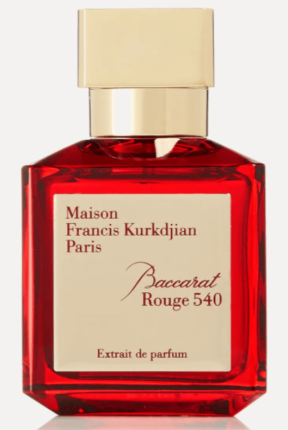 Baccarat Rouge 540 Extrait de Parfum, Maison Francis Kurkdjian: Περιγράφεται ως «ποιητική αλχημεία» λουλουδιών με ξυλώδεις νότες που παραμένουν στο δέρμα. Το πλούσιο άρωμα έχει συνδυαστεί εξειδικευμένα με γλυκό γιασεμί, πλούσιο κέδρο και πικάντικο σαφράν.