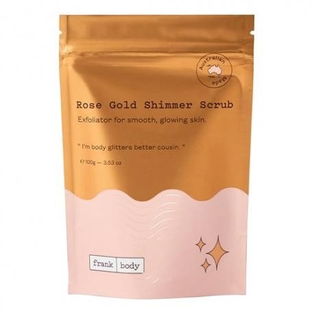 Rose Gold Shimmer Scrub, frankbody: Ανακαλύψτε το νέο εκπληκτικό προϊόν απολέπισης Rose Gold του Frank Body. Είναι το ραντεβού των ονείρων σας στο ντους. Μια καινούρια έκδοση του παγκοσμίου φήμης προϊόντος απολέπισης shimmer, σε κολακευτικό ροζ χρυσό. Απολέπιση, ενυδάτωση και λάμψη ταυτόχρονα: αυτό είναι το πλήρες πακέτο. Χρησιμοποιώντας την φυσική χρυσή μίκα ως βιώσιμη εναλλακτική λύση για τις πλαστικές παγιέτες, η λάμψη είναι 100% φυσική, ελαφριά και κομποστοποιήσιμη. Είναι οικολογικό και φιλικό προς το δέρμα.