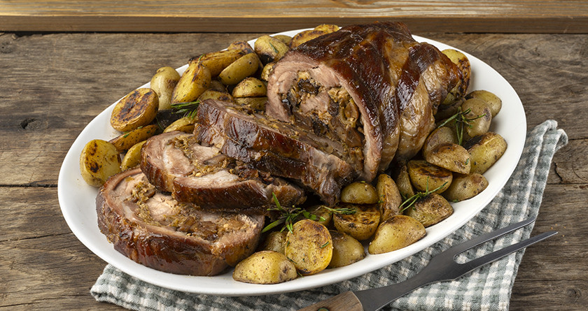 Χοιρινό ρολό γεμιστό με δαμάσκηνα και κάστανα