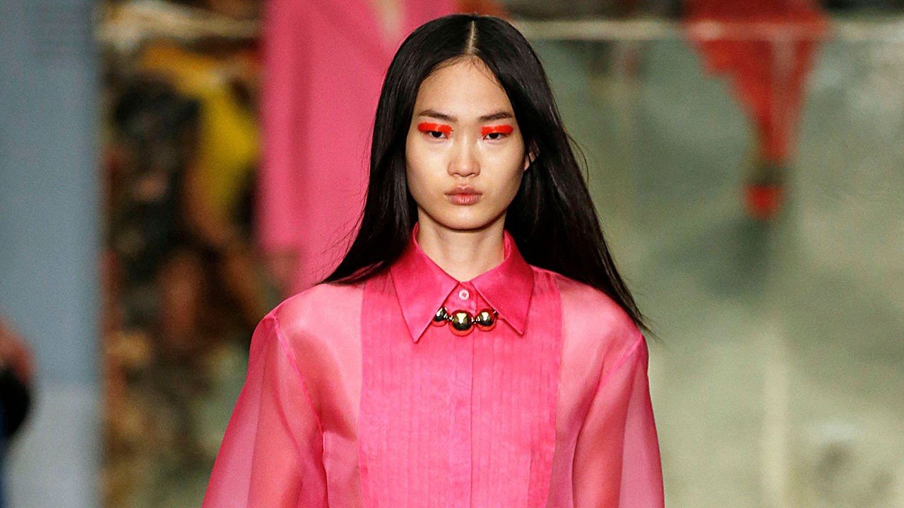 Στην A/W 19 επίδειξη της Carolina Herrera τα πάντα ήταν θέμα μινιμαλισμού. Έτσι και το μακιγιάζ, αν και περιλάμβανε έντονες ροζ, πορτοκαλί και μπλε αποχρώσεις στα βλέφαρα, εξισορροπήθηκε με φυσικό δέρμα. Για να πετύχει την πιο έντονη απόδοση χρώματος στα μάτια, η makeup artist Romy Soleimani δεν χρησιμοποιήσε μια σκιά, αλλά ένα κραγιόν, το οποίο και εφάρμοσε απευθείας από την συσκευασία. "Μην προσπαθήσετε να φτιάξετε το τέλειο σχήμα. Έτσι θα πετύχετε το εντυπωσιακό εφέ" εκμυστηρεύτηκε. Στην ίδια μίνιμαλ φιλοσοφία κινήθηκαν και τα μαλλιά των μοντέλων, τα οποία παρέμειναν στο φυσικό τους texture, μετά από παρότρυνση του hairstylist Odile Gilbert.