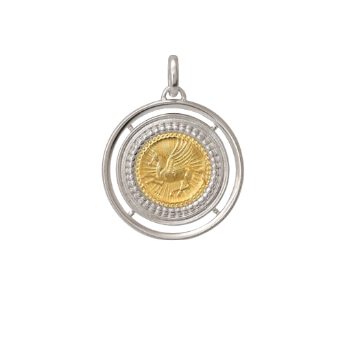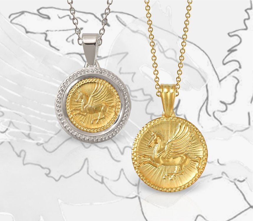 Ένας φόρος τιμής στη διαχρονική κομψότητα του φτερωτού αλόγου. Ο Πήγασος είναι ένα από τα πιο γοητευτικά πλάσματα της μυθολογίας. Γεννημένος με αθάνατα φτερά, δώρο του πατέρα του Ποσειδώνα, κέρδισε την εύνοια του Δία και έγινε ο αγγελιοφόρος της βροντής και της αστραπής στον ουρανό. Συμβολίζει τα μεγαλύτερα όνειρα της ανθρωπότητας: τη συνάντηση της γήινης δύναμης με την ουράνια ελευθερία και τη δυνατότητα να υπερβούμε τις συνθήκες της ζωής μας. Το γούρι του brand Lalaounis με τον Πήγασο εμπνέεται από αρχαία νομίσματα της Κορίνθου, χρονολογίας 550-300 π.Χ.