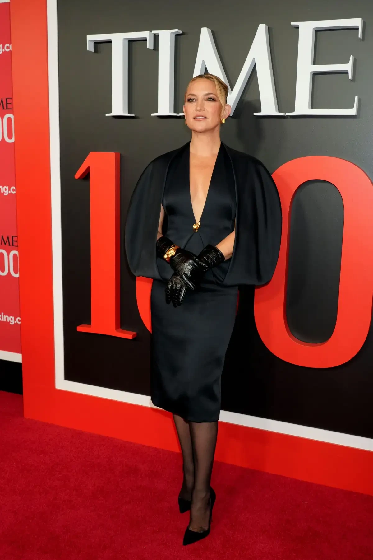 Η Kate Hudson έκανε μία από τις πιο fashion-forward εμφανίσεις της βραδιάς με sculptural μαύρο midi dress, exaggerated cape-like μανίκια και plunging neckline. Η χρυσή καρφίτσα στη μέση, τα βραχιόλια πάνω από μαύρα δερμάτινα γάντια, το sleek updo και οι pointed pumps ολοκλήρωσαν ένα look με έντονο editorial χαρακτήρα.