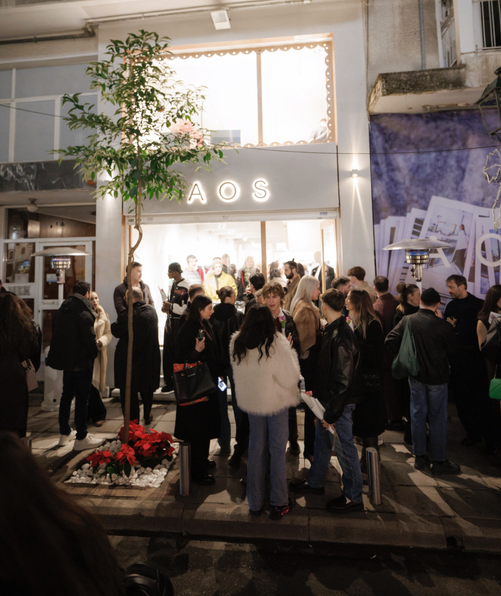 Το pop-up corner στην οδό Προξένου Κορομηλά 58 μεταμορφώθηκε σε έναν σύγχρονο urban προορισμό, όπου η μόδα, η τέχνη και το lifestyle συνυπάρχουν αρμονικά. Καθ’ όλη τη διάρκεια της ημέρας, ο χώρος αποτέλεσε σημείο αναφοράς για το κοινό της πόλης, προσελκύοντας επισκέπτες που είχαν την ευκαιρία να γνωρίσουν από κοντά τη νέα συλλογή, να ανακαλύψουν τα signature κομμάτια του brand και να έρθουν σε επαφή με το σύμπαν του AOS μέσα από ένα επιμελημένο, σύγχρονο σκηνικό που αποτυπώνει την urban αισθητική του.