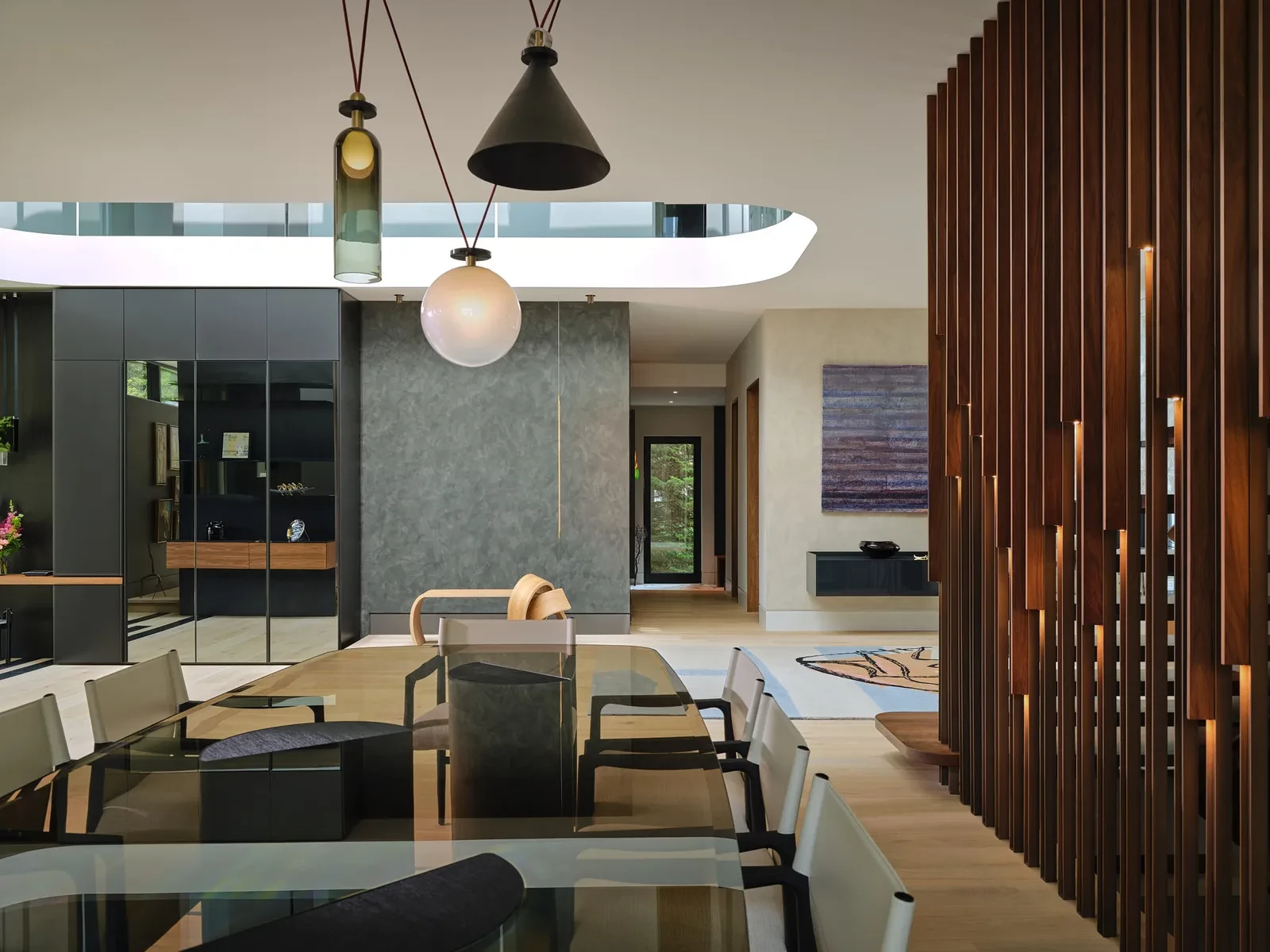 Μια παραθαλάσσια κατοικία στις όχθες της λίμνης Οντάριο δύσκολα θα συσχετιζόταν με τη μεσανατολική αρχιτεκτονική και την πολιτιστική κληρονομιά. Κι όμως, αυτό το καναδικό σπίτι αντλεί βαθιά έμπνευση από την Παλαιστίνη, τον τόπο καταγωγής της τετραμελούς οικογένειας που το κατοικεί. Η σύγχρονη, επιβλητική του ταυτότητα προέκυψε μέσα από τη δημιουργική σύμπραξη του σχεδιαστή Nathan Buhler από το BLDG Workshop, της interior designer Dragana Maznic με έδρα το Τορόντο και της κατασκευαστικής εταιρείας Easton Homes, με καθοριστική τη συμβολή των ίδιων των ιδιοκτητών, οι οποίοι συμμετείχαν ενεργά σε κάθε σχεδιαστική απόφαση.