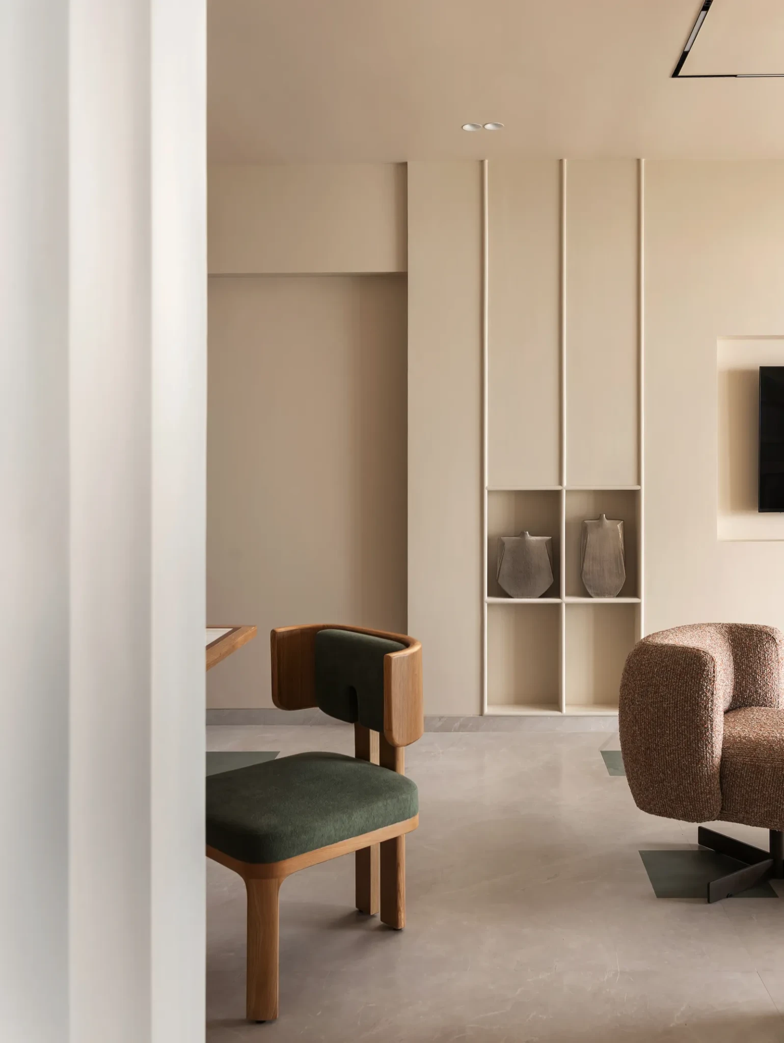 Στην καρδιά του Νότιου Μουμπάι, ένα διαμέρισμα περίπου 145 τ.μ. επαναπροσδιορίζει την έννοια της σύγχρονης κατοικίας μέσα από μια φιλοσοφία που αντλεί έμπνευση από την ιαπωνική αισθητική. Το project των designers Pria Kanakia και Disha Vakharia, του studio Bear Spaces & Co, βασίστηκε στην έννοια της ισορροπίας, όπου η απλότητα και η λειτουργικότητα συνυπάρχουν αρμονικά. Οι ιδιοκτήτες, μια πολυμελής οικογένεια, επιθυμούσαν έναν χώρο που να αποπνέει γαλήνη χωρίς να στερείται χαρακτήρα. Η έμπνευση προήλθε από την εμπειρία τους σε ένα ιαπωνικό σπίτι, όπου η καθημερινότητα εξελίσσεται με ηρεμία και πρόθεση.