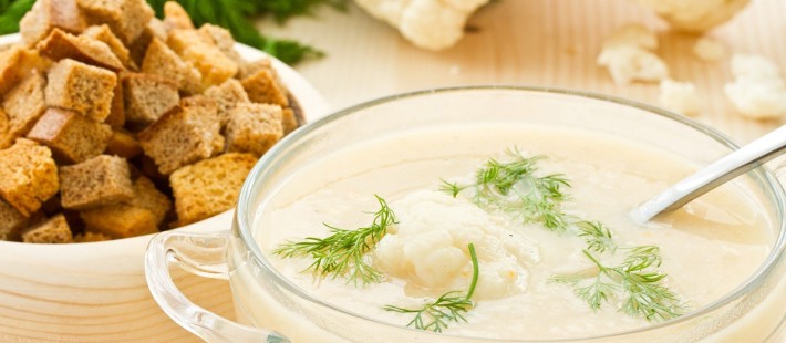 - ΥΛΙΚΑ: 1 κ.σ. παρθένο ελαιόλαδο, 1 κρεμμύδι, ψιλοκομμένο, 2 σκ. σκόρδου πολτοποιημένες, 2 κ.γ. κόλιανδρο φρεσκοτριμμένο, 1 κ.γ. κύμινο, ¼ κ.γ. νιφάδες τσίλι, 750 γρ. κουνουπίδι κομμένα σε μπουκετάκια, 2 κούπες ζωμό λαχανικών, 2 κούπες νερό, ¼ κούπας κρέμα γάλακτος - ΕΚΤΕΛΕΣΗ: Σε μια μεγάλη κατσαρόλα ζεστάνετε το εξαιρετικά παρθένο ελαιόλαδο, σε μεσαία φωτιά. Προσθέστε το κρεμμύδι και το σκόρδο και τσιγαρίζετε ανακατεύοντας για 6-7 λεπτά, μέχρι να γίνουν πολύ μαλακά. Προσθέτετε το κόλιανδρο, το κύμινο και τις νιφάδες τσίλι. Αυξάνετε τη θερμοκρασία σε υψηλή και τσιγαρίζετε τα υλικά για δύο λεπτά. Προσθέστε το κουνουπίδι, τον ζωμό και το νερό. Καλύψτε την κατσαρόλα και αφήστε το μείγμα να βράσει. Μόλις βράσει, χαμηλώστε τη φωτιά, καλύψτε την κατσαρόλα μερικώς με ένα καπάκι και αφήστε τη σούπα να σιγοβράσει για 30 λεπτά, μέχρι να μαλακώσει το κουνουπίδι. Αφήστε τη σούπα στην άκρη για 20 λεπτά. Σε δόσεις χτυπήστε τη σούπα σε ένα μπλέντερ μέχρι να γίνει λεία. Τοποθετήστε την πάλι στην κατσαρόλα και ανακατεύοντας προσθέστε την κρέμα γάλακτος, σε χαμηλή φωτιά, έτσι ώστε να ζεσταθεί η σούπα. Γαρνίρετε με αλάτι και πιπέρι.