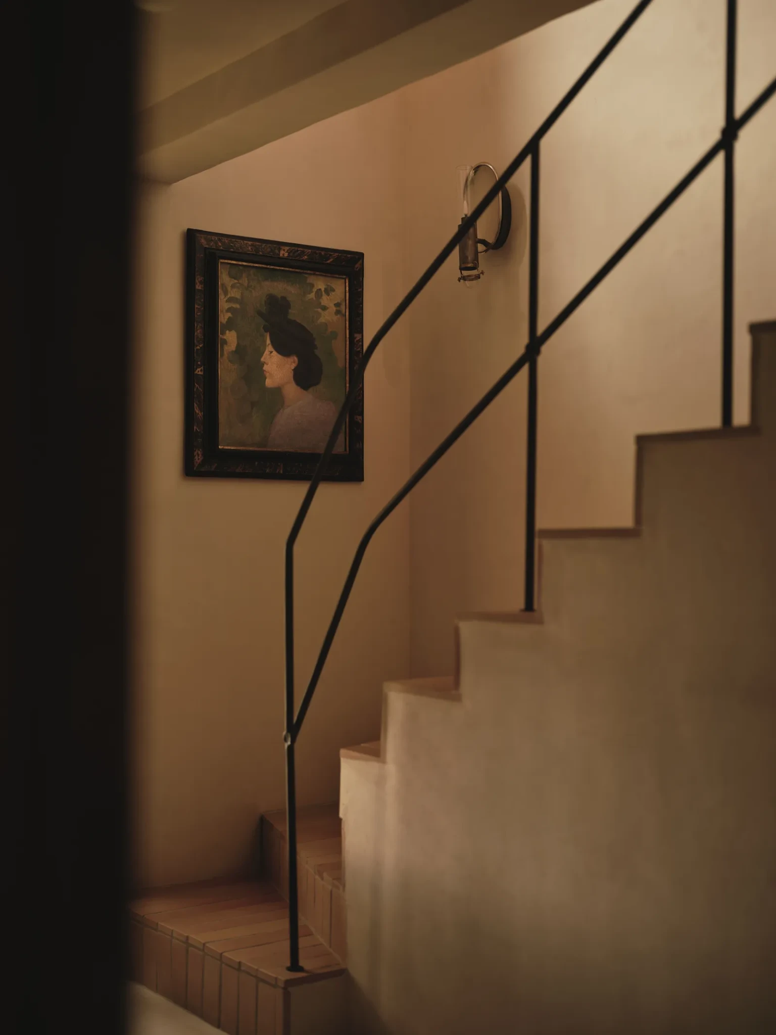 Η επιλογή των υλικών αποτέλεσε βασικό στοιχείο της ταυτότητας του σπιτιού. Οι τοίχοι, τα δάπεδα και τα ταβάνια καλύφθηκαν με παραδοσιακό γύψο “plâtre au planche”, μια τεχνική που απαιτεί εξειδικευμένη δεξιοτεχνία και προσφέρει μοναδική υφή και θερμική άνεση στον χώρο. Η πέτρα και τα κεραμικά πλακάκια από την Προβηγκία ενισχύουν τη σύνδεση με το τοπικό περιβάλλον, ενώ τα ξύλινα στοιχεία προσθέτουν ζεστασιά. Τα υλικά δεν λειτουργούν ως ένα απλό φόντο, αλλά ως ενεργά στοιχεία της αφήγησης του χώρου, αποκαλύπτοντας τη φθορά και την ομορφιά του χρόνου.