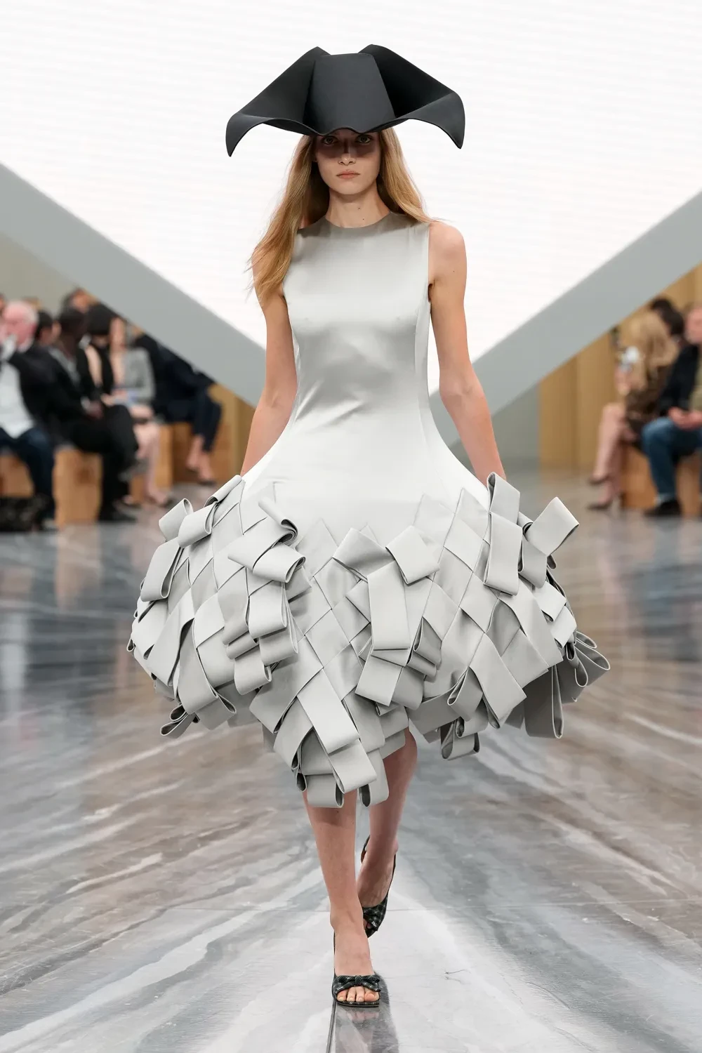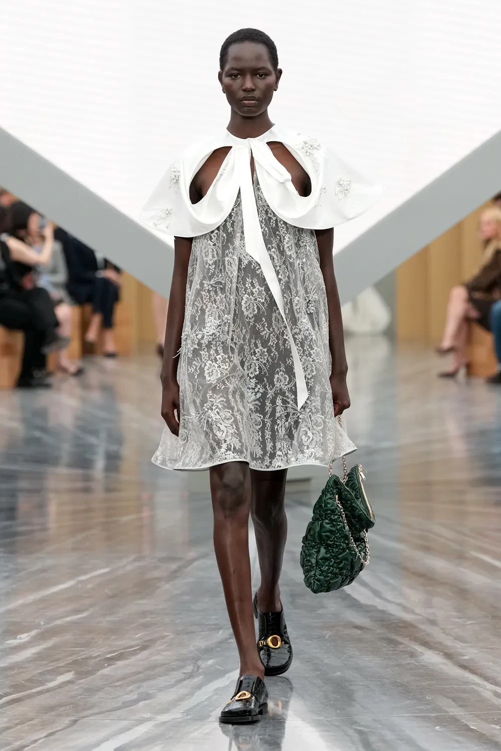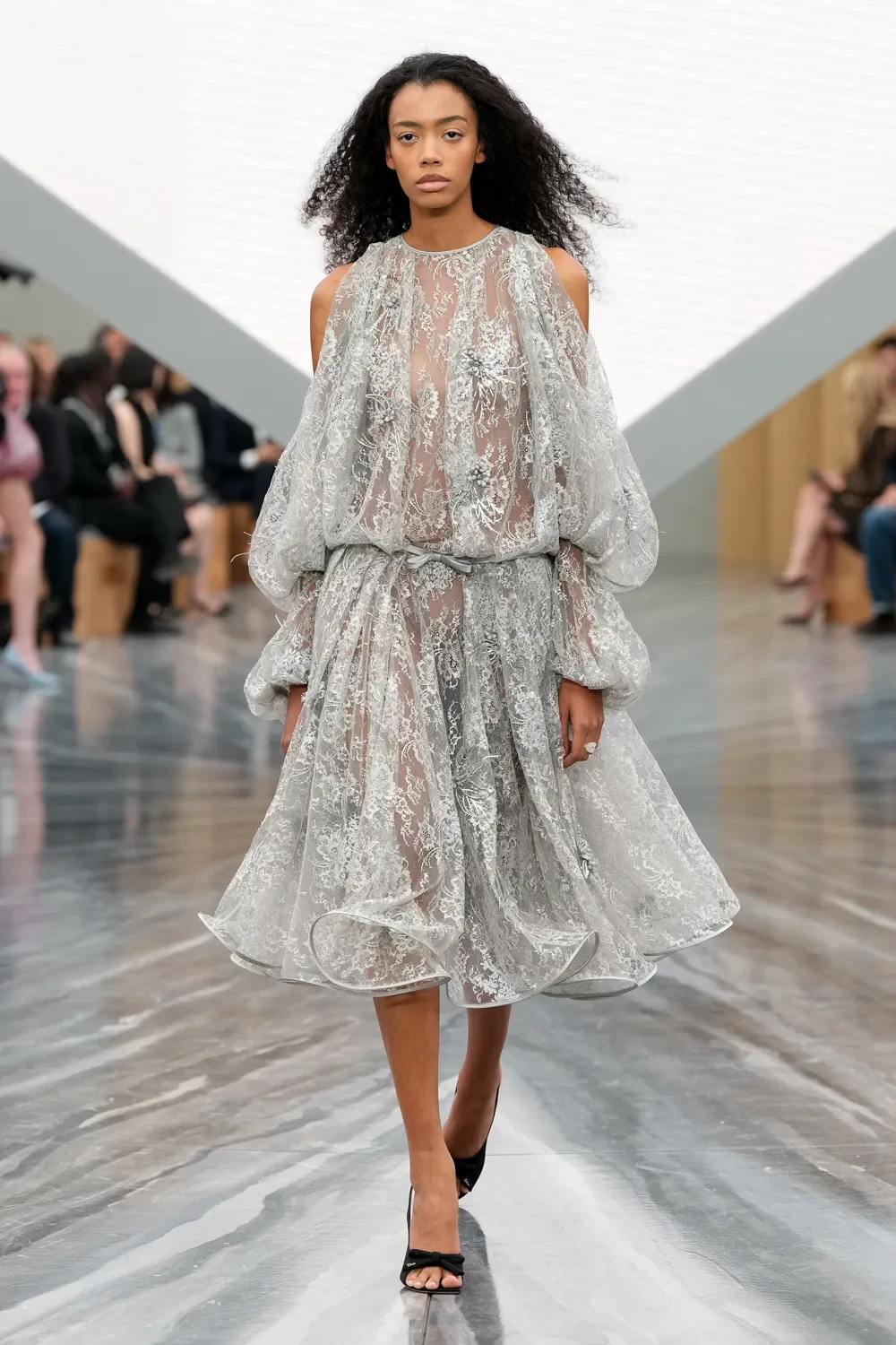 Η πασαρέλα εξελίχθηκε σαν ένα γράμμα αγάπης προς τον Οίκο. Οι αρχειακές αναφορές συνυφάνθηκαν με μελλοντολογικές πινελιές, η αυστηρότητα της ραπτικής συνάντησε την ποίηση της πτυχολογίας και κάθε σιλουέτα αφηγήθηκε μια ιστορία κομψότητας, εξέλιξης και θάρρους.