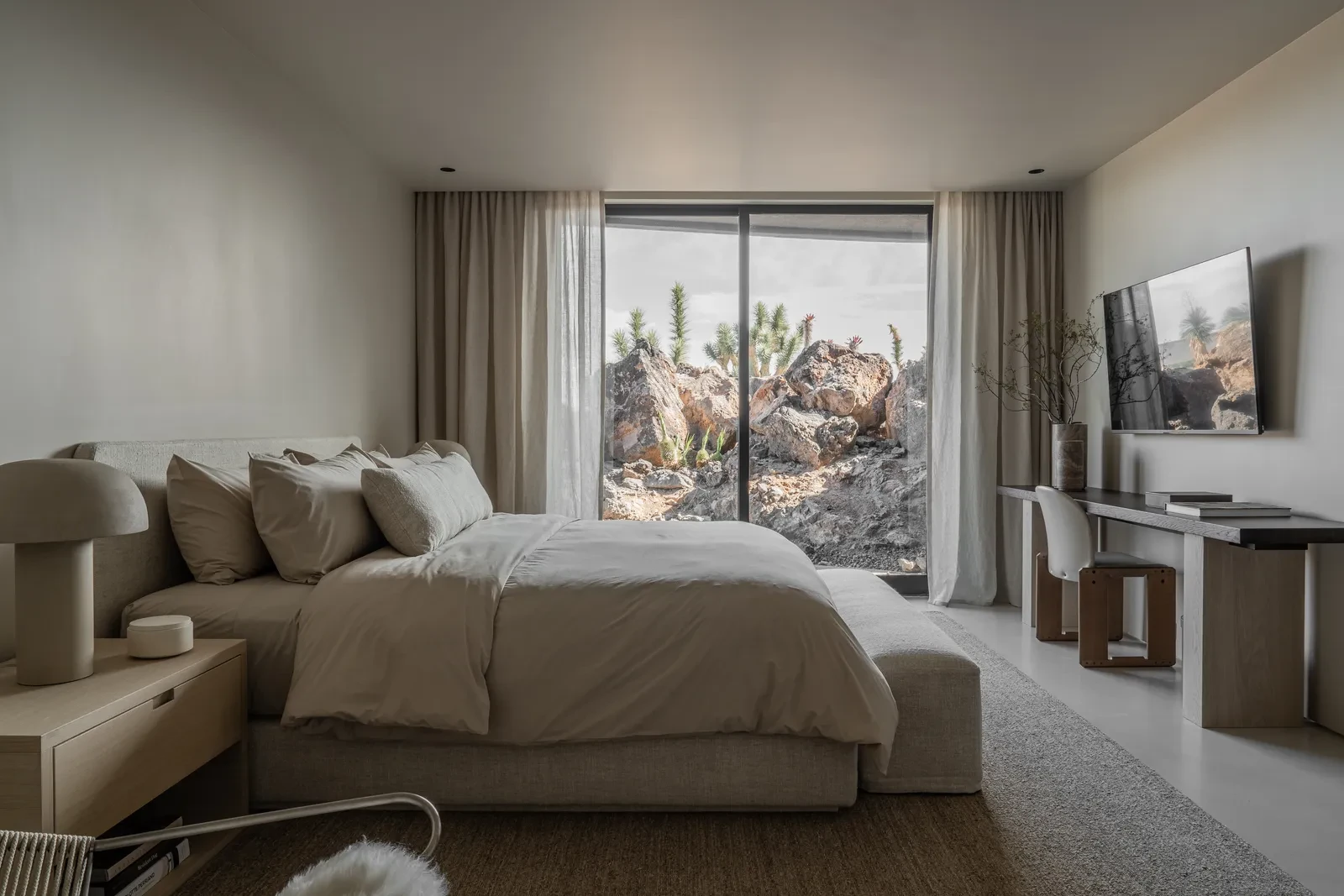 Τελικά, αυτό που κάνει το Rock House τόσο ειδικό δεν είναι μόνο οι λεπτομέρειες ή τα υλικά αλλά η σύνδεση με το γύρω περιβάλλον. Από τις ευρύχωρες βεράντες και τις αυλές, μέχρι τις επιλογές υλικών και επίπλων, κάθε στοιχείο έχει σχεδιαστεί ώστε να συντονίζεται με το φως, την υφή και το χρώμα της ερήμου. Πρόκειται για μια κατοικία που δεν είναι σχεδιασμένη απλά για να στεγάζει, αλλά και να συνομιλεί αρμονικά με τη φύση.