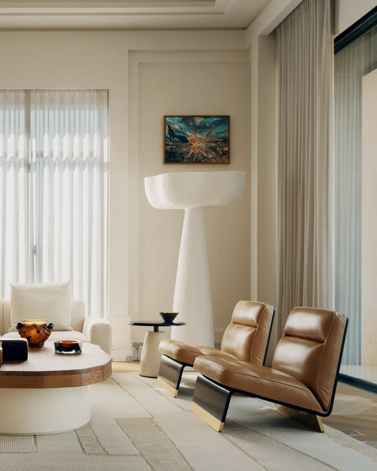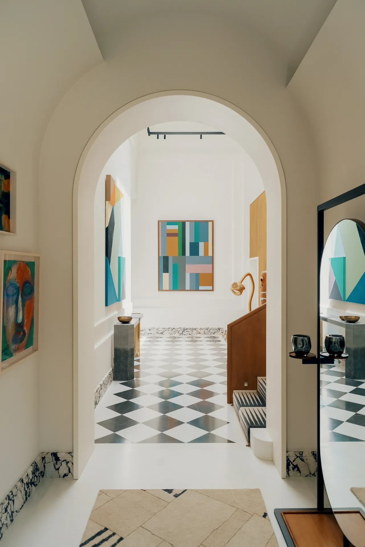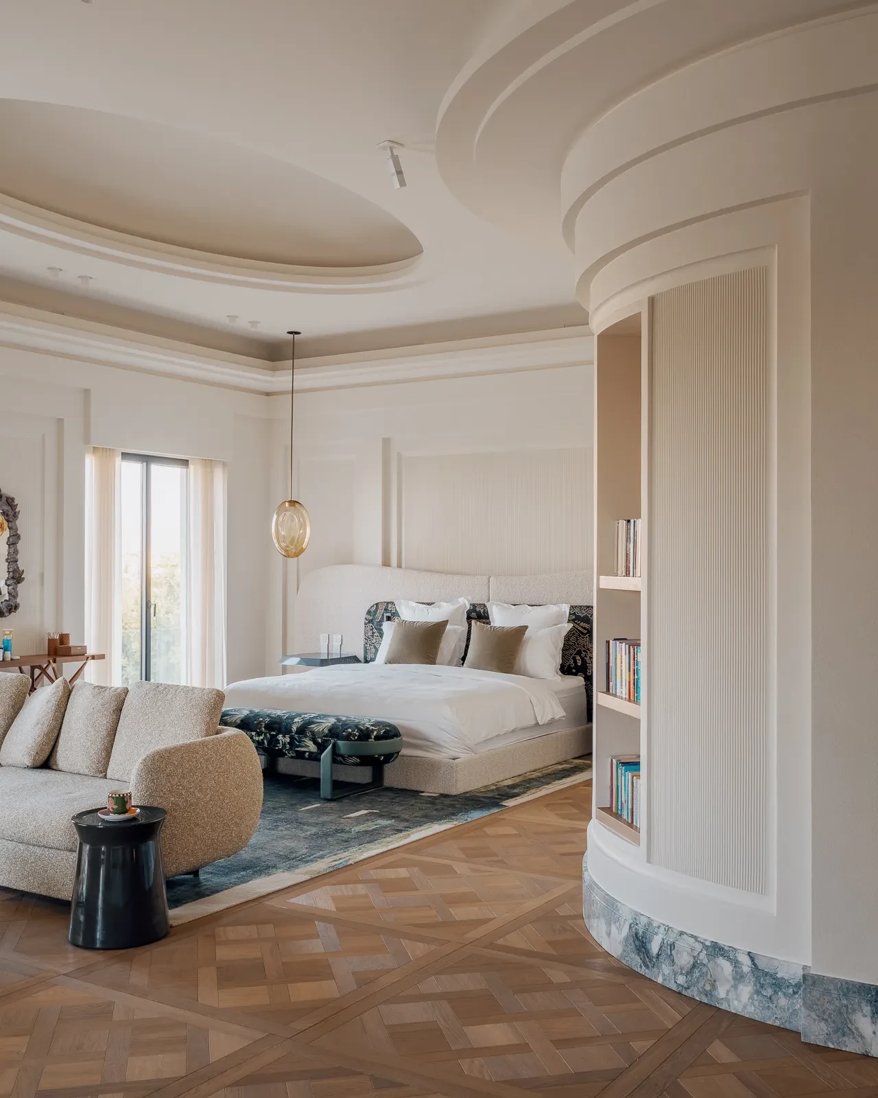 Το νέο εσωτερικό αγκαλιάζει αυτά τα παραδοσιακά στοιχεία με μια ουδέτερη χρωματική παλέτα, η οποία τονίζει την τέχνη και τα έντονα έργα στους τοίχους, δίνοντας χώρο σε κάθε εικόνα να αναδειχθεί. Η επιλογή αυτή επιτρέπει στα έργα μιας εντυπωσιακής συλλογής που περιλαμβάνει τοπικούς και αραβικούς καλλιτέχνες να «αναπνέουν» μέσα στον χώρο, τονίζοντας το ενδιαφέρον των ιδιοκτητών για πολιτισμό και δημιουργία.