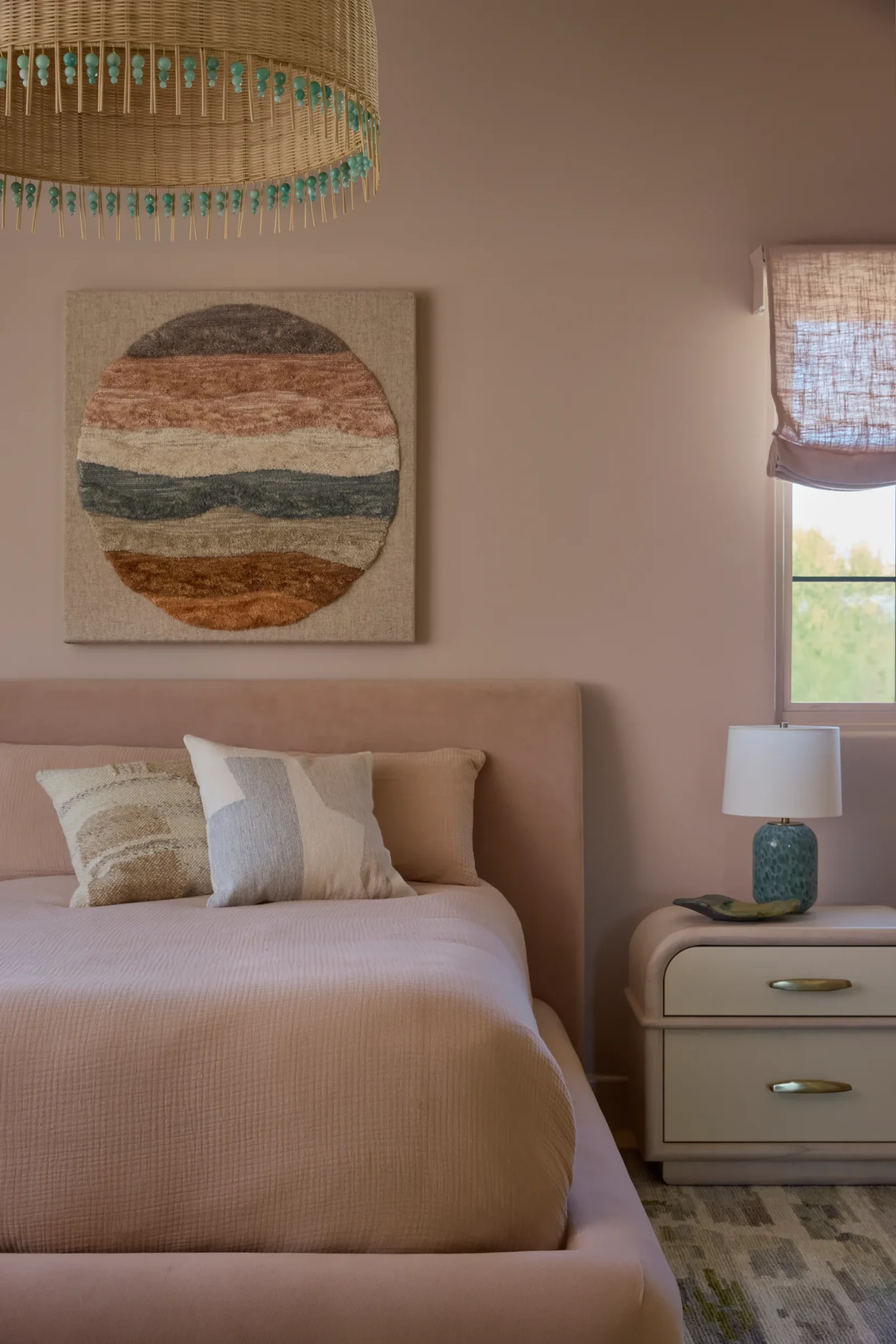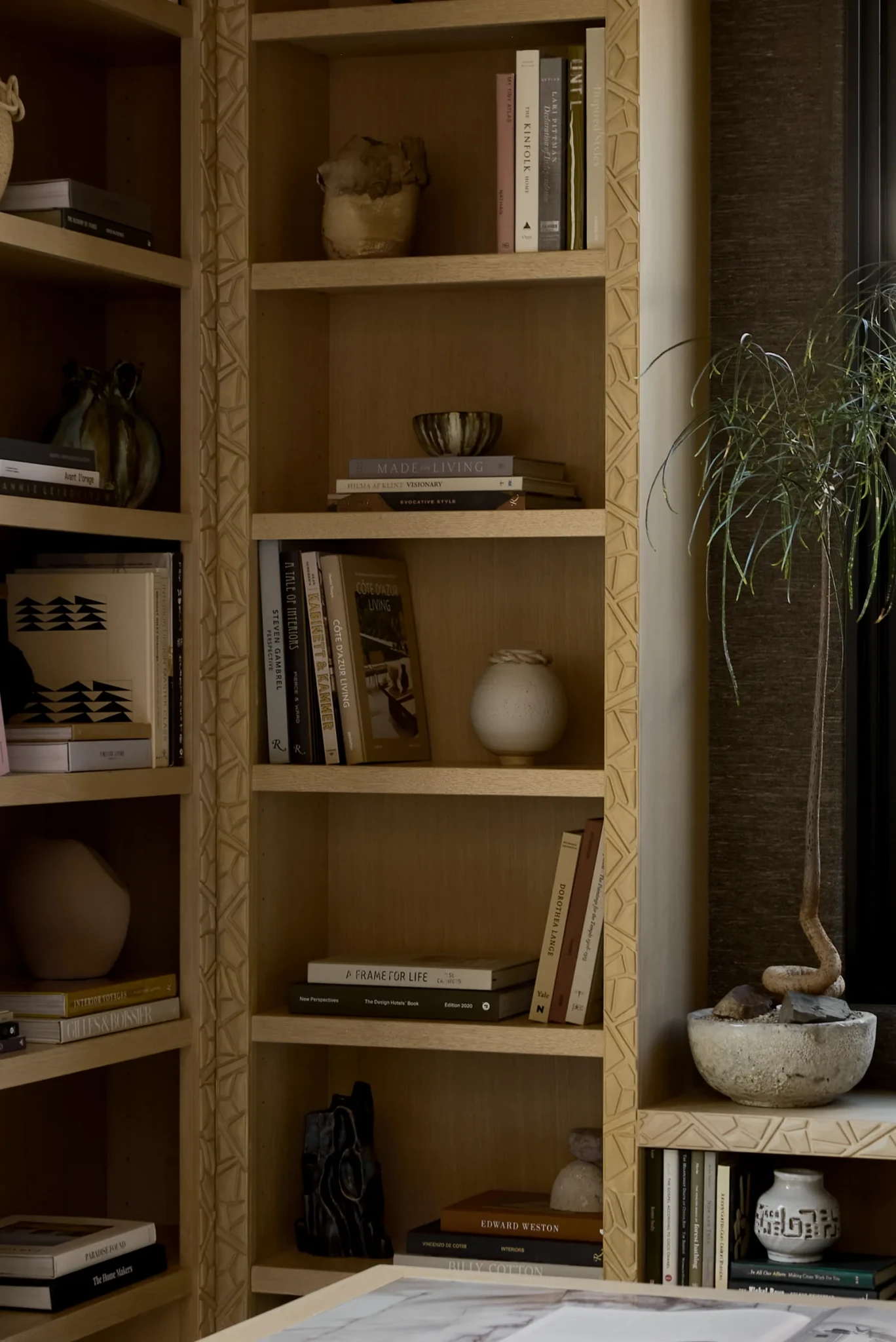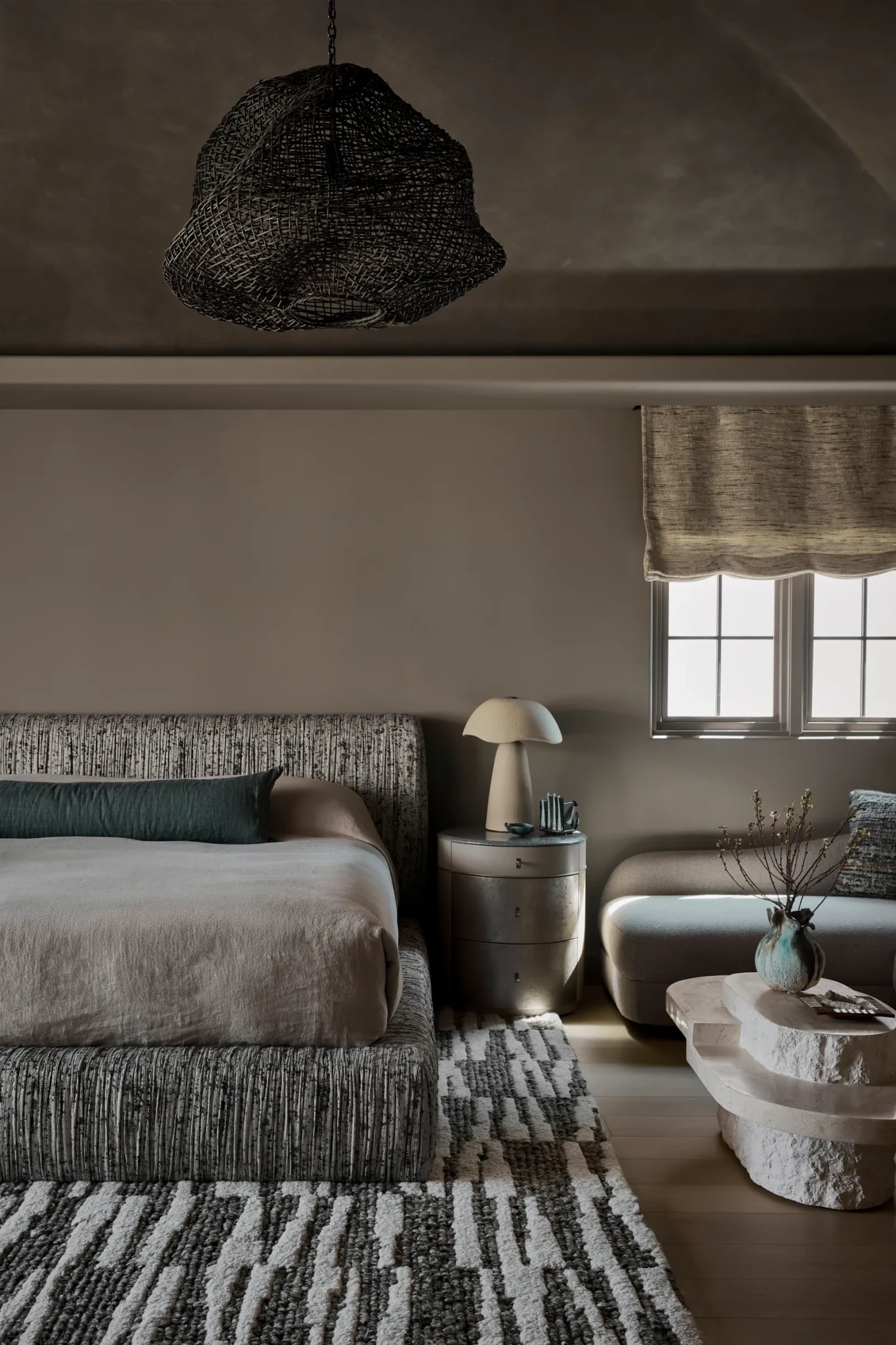 Τα υλικά κινούνται σε μια ζεστή, γήινη παλέτα, με την πέτρα, το μέταλλο, το ξύλο και τα φυσικά υφάσματα να συνδυάζονται μεταξύ τους για να δημιουργήσουν ένα layered αποτέλεσμα που εξελίσσεται καθώς αλλάζει το φως.