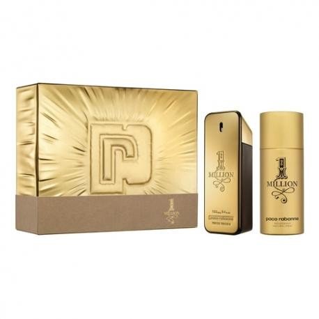 One million eau de toilette set, Paco Rabanne: Ο φλογερός άνδρας θέτει σε εφαρμογή την υπέρτατη αποπλάνηση... Το νέο όπλο του ονομάζεται 1 Million, μια φρέσκια μυρωδιά δέρματος και μπαχαρικών. Επειδή τίποτα δεν είναι υπερβολικά όμορφο για αυτόν τον γόη, το μπουκάλι παίρνει τη μορφή μιας ακαταμάχητης ράβδου χρυσού. Οι νότες κορυφής είναι φρέσκες και σπιρτόζικες, με το μανταρίνι σαγκουίνι και την πιπεράτη μέντα να προκαλούν γοητεία. Το σετ περιλαμβάνει το Οne Million EDΤ και Deodorant.