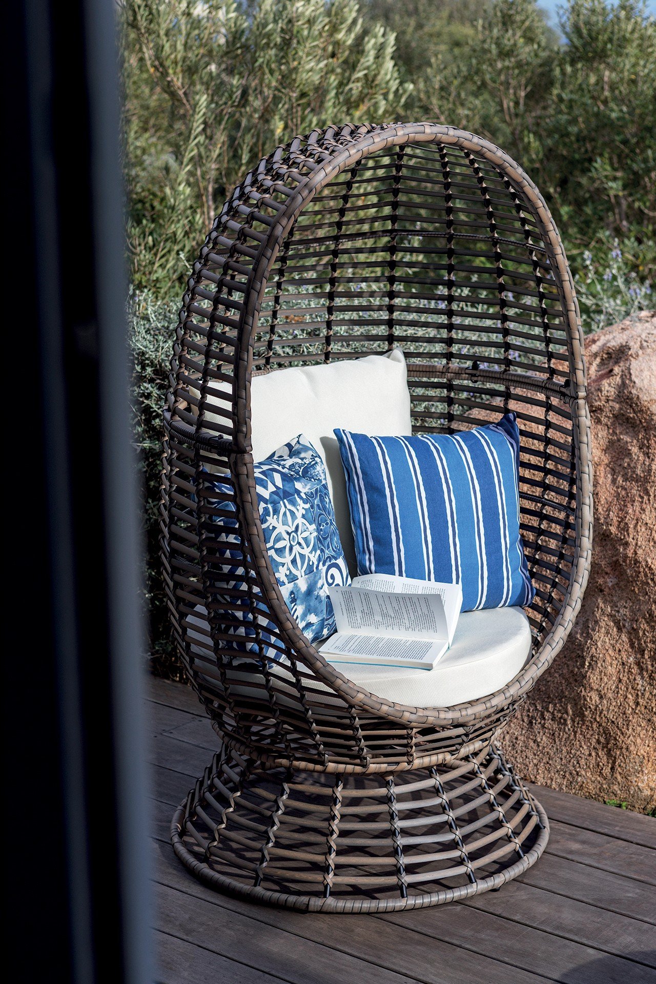 4. Στον κήπο ή τη βεράντα σας, χρησιμοποιήστε πλεκτά καλάθια από ψάθα ή ύφασμα σε διάφορα χρώματα και σχέδια. Μπορούν να λειτουργήσουν σαν κασπό, να αποθηκεύσουν αντικείμενα ή ακόμη και να χρησιμοποιηθούν στο art de la table. Είναι τα πιο αγαπημένα υλικά της άνοιξης και του καλοκαιριού και έχουν άπειρες χρήσεις, τόσο στους υπαίθριους όσο και στους εσωτερικούς χώρους.